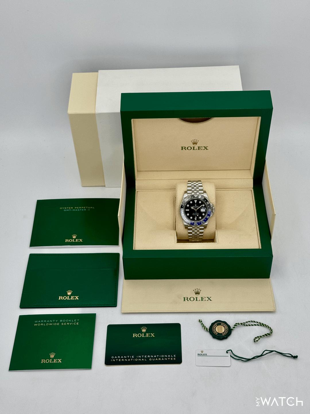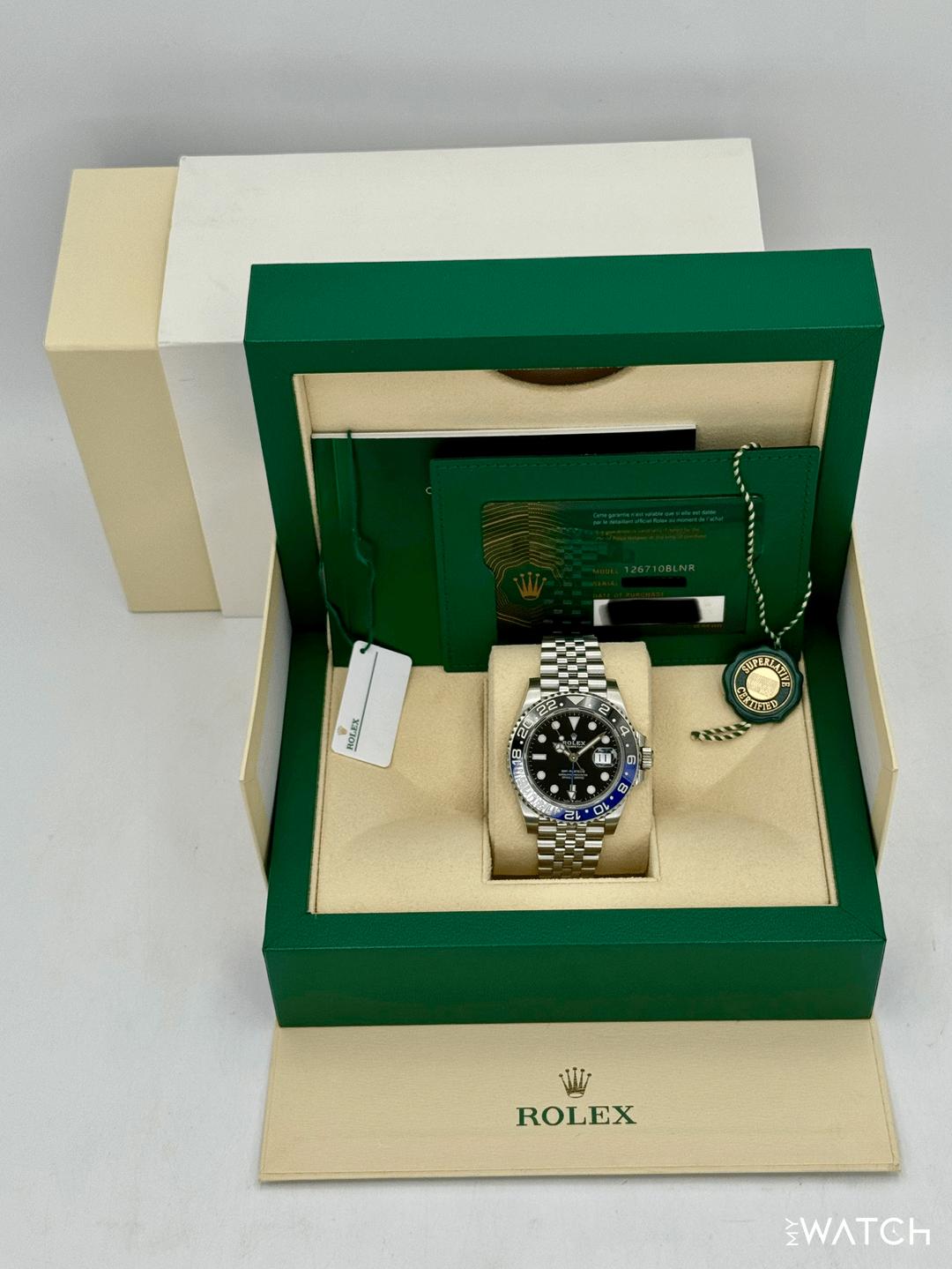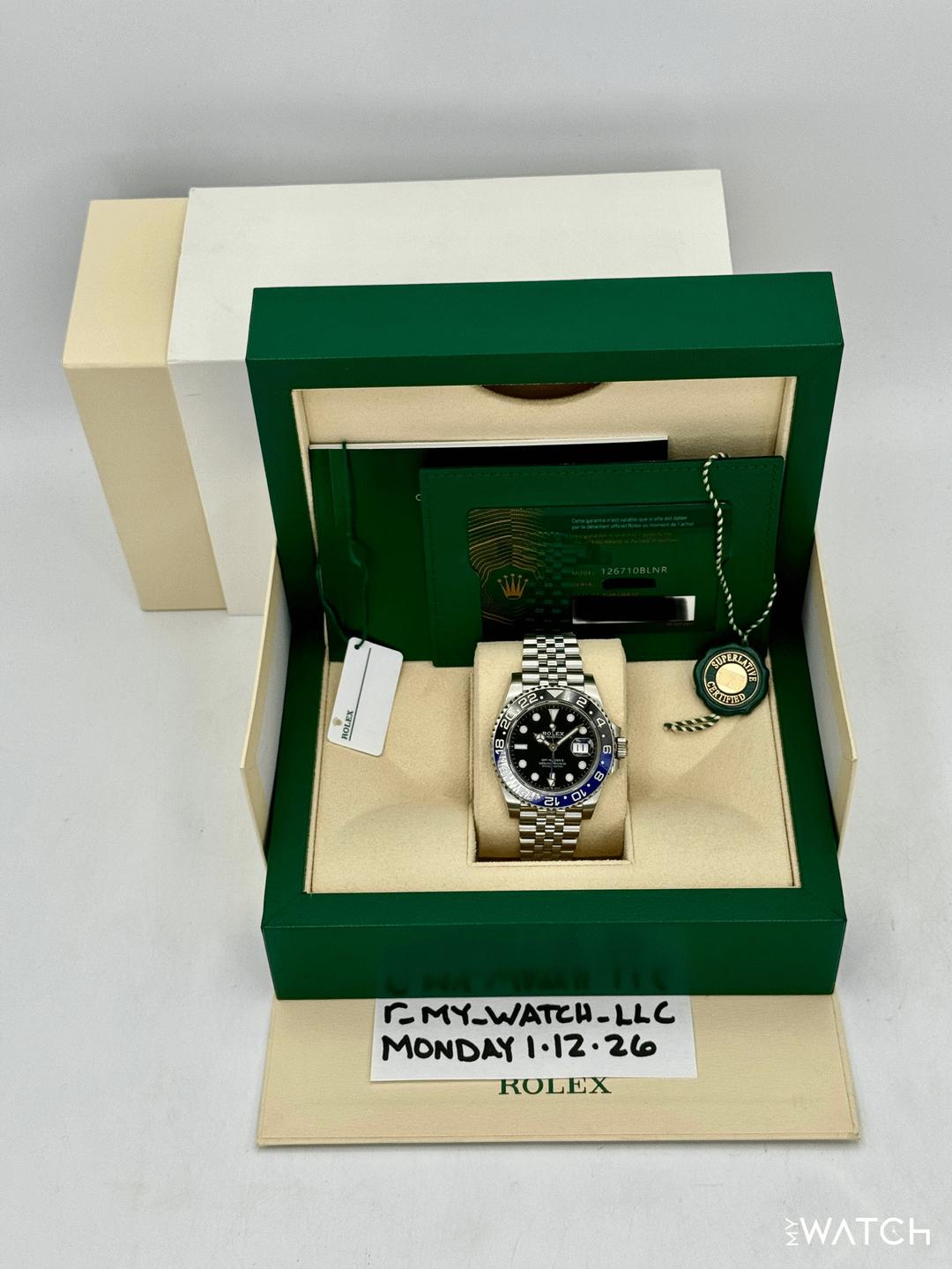 🔵**2023 Rolex GMT-Master II "Batgirl" 40mm 126710BLNR in Oystersteel with Jubilee Bracelet and Black Dial** 🔵**TRADE or SELL us your luxury watch, all brands considered. Message me details.** **Includes the following:** **✔️Original Rolex Double Boxed** **✔️Box and Papers - Yes** **✔️5 Year Manufacturer Warranty** **✔️Warranty Card Dated November 2023** **✔️Manual and Warranty booklets** **✔️Green and White Hang Tags included** **✔️Material: Stainless Steel** **✔️Size: 7.75inch wrist (Full Links)** **✔️Watch is in excellent overall condition. Please see photos for details.** **✔️**[**Trades**](https://mywatchllc.com/pages/sell-rolex-watch) **welcome** Business Name: **My Watch LLC** LOCATION: Oak Park, Michigan ✔️[MyWatchLLC.com](http://mywatchllc.com/) for current inventory ✔️Google Business Listing [https://g.co/kgs/Cmd6FPW](https://g.co/kgs/Cmd6FPW) ✔️Business Hours M-F 9-6 ✔️Facetime/Video chat/calls welcome to view the watch interested. ✔️Contact: 248-422-0909 via text or call for quickest response. 🟢TERMS: Visit [MyWatchLLC.Com](http://mywatchllc.com/) for payments accepted 🟢REFERENCES/REVIEWS: We are well reviewed on all platforms from google, trust pilot, rolexforums, additionally we have 300+ reference in multiple FaceBook watch groups, reference checks welcome. 🟢SHIPPING: If you are not local, we offer Fully Insured FedEx overnight shipping in the USA for a fee. International shipping available. [https://mywatchllc.com/products/2023-rolex-gmt-master-ii-batgirl-40mm-126710blnr-jubilee-2](https://mywatchllc.com/products/2023-rolex-gmt-master-ii-batgirl-40mm-126710blnr-jubilee-2)