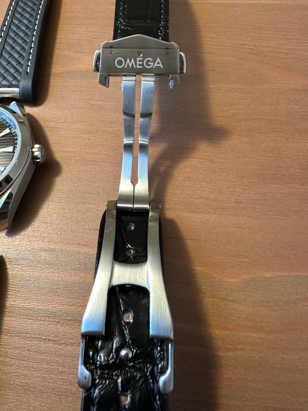 Omega Seamaster Aqua Terra 38mm 150M 220.12.38.20.01.001 Priced at $4,000 + Shipping to ConUS only. Preferred form of payment is PayPal F&F (3%+ for G&S) Timestamp: https://imgur.com/gallery/watchex-sqwishiy-1-14-26-VB6SI8S#izRihOi - In good condition - Has a few scratches shown in photos - 100% Authentic Guaranteed - Comes with extra authentic Omega Alligator leather strap ($600 value) - Does not come with Box nor Papers - Watch and straps only Located in Greater Boston Area Can find me on eBay @ Sqwishiy The Seamaster Aqua Terra is a superb tribute to OMEGA’s rich maritime heritage. In this 38mm model, the symmetrical case has been crafted from stainless steel, with a wave-edged design featured on the back. The black dial is distinguished by a horizontal “teak” pattern which is inspired by the wooden decks of luxury sailboats. There is also a date window at 6 o'clock and rhodium-plated hands and indexes filled with white Super-LumiNova. The black strap is made from structured rubber and includes grey lining and an additional stainless steel link which integrates it to the case. This certified chronometer is powered by the OMEGA Master Chronometer calibre 8800, certified at the industry’s highest standard by the Swiss Federal Institute of Metrology (METAS). * Anti-magnetic * Chronometer * Date * Master Chronometer Certified * Screw-in crown * Transparent caseback TECHNICAL DATA Reference 220.12.38.20.01.001 Between lugs 19 mm Lug‑to‑lug 45.00 mm Thickness 12.24 mm Case diameter 38 mm Case Steel Dial color Black Crystal Domed scratch‑resistant sapphire crystal with anti‑reflective treatment on both sides Water resistance 15 bar (150 meters / 500 feet) Total product weight (approx.) 90 g Caliber Omega 8800 Movement type Self winding Power reserve 55 hours Strap color Black Strap type Rubber strap + Authentic Omega Alligator Strap Strap surface Rubber + Alligator Leather Buckle type Foldover clasp Buckle material Stainless steel