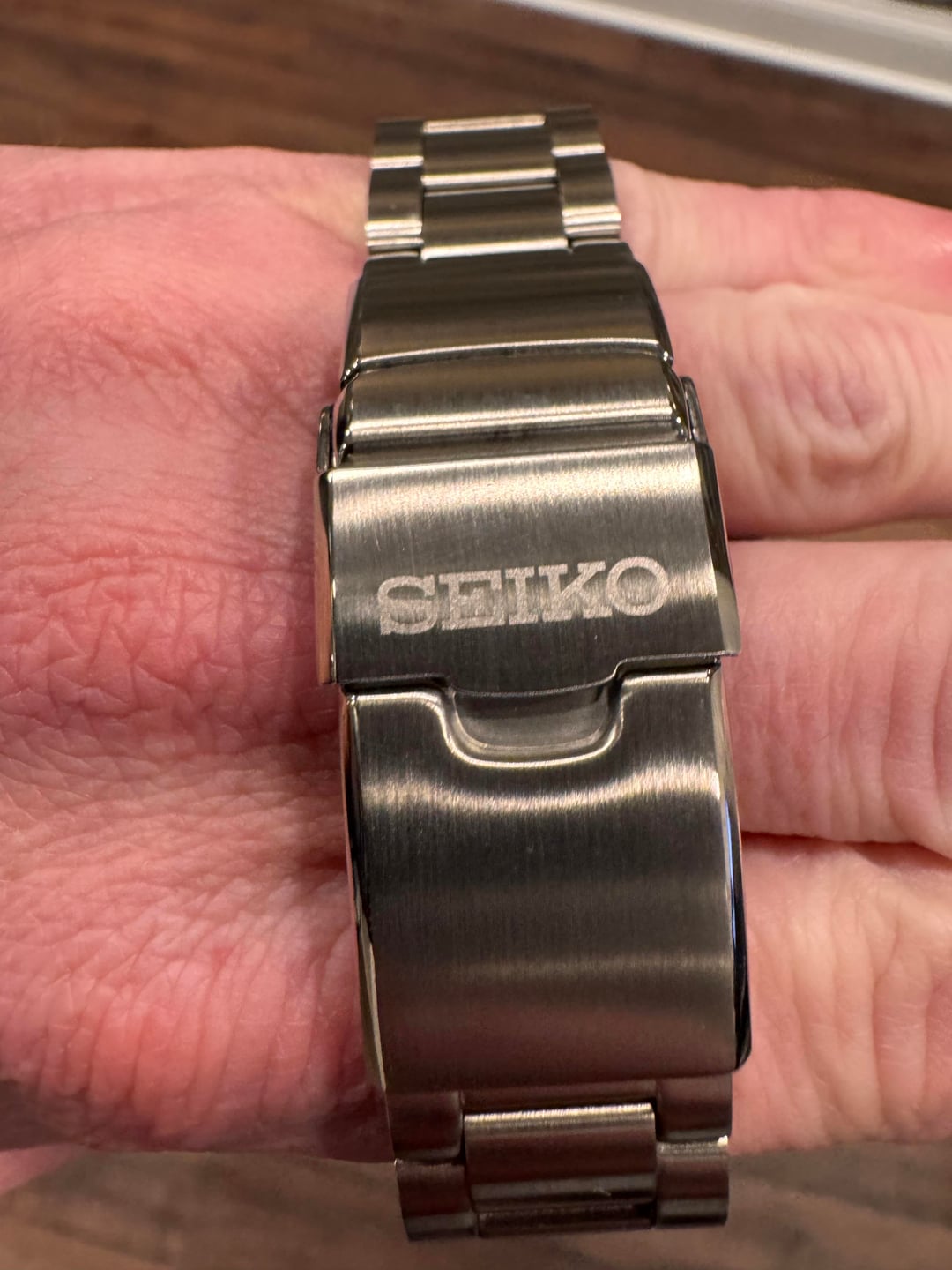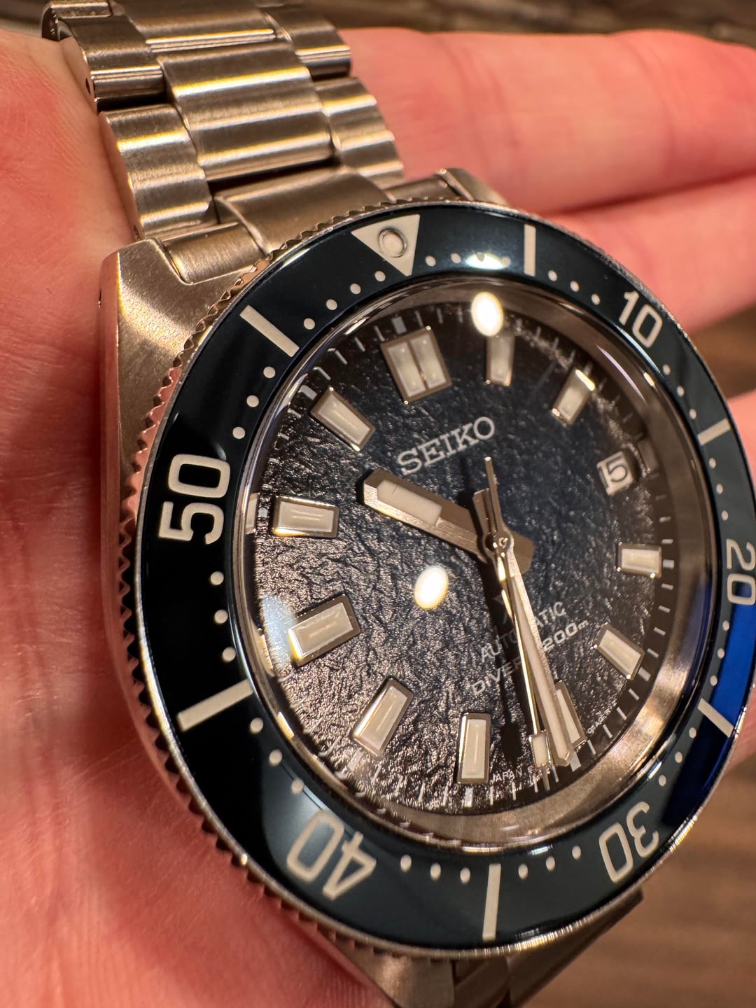 For sale is a Seiko Prospex 1965 Heritage Diver - SPB421 - Alaska Moulins Stainless Steel with curved sapphire crystal with AR coating on inner surface, 200 meter WR, with bracelet (20mm lug width) Very cool looking deep blue textured dial that is patterned to evoke the icy surface of the Alaska Moulins. CASE DIMENSIONS: THICKNESS: 13.2mm DIAMETER: 40.5mm LENGTH: 47.6mm MOVEMENT: Caliber 6R35 21,600 vibrations per hour 24 jewels Power reserve: approximately 70 hours CONDITION: Excellent condition, purchased 8/12/25. Three year Seiko warranty is transferrable. Bracelet was rarely worn with it as I had it on strap most of the time. I like the watch a lot, but it had taken a backseat to some others and didnt get as much wrist time lately. Price: $900 USD. Insured Ground shipping included through UPS within CONUS. PayPal FF or Venmo only. Please ask for more photos or videos.