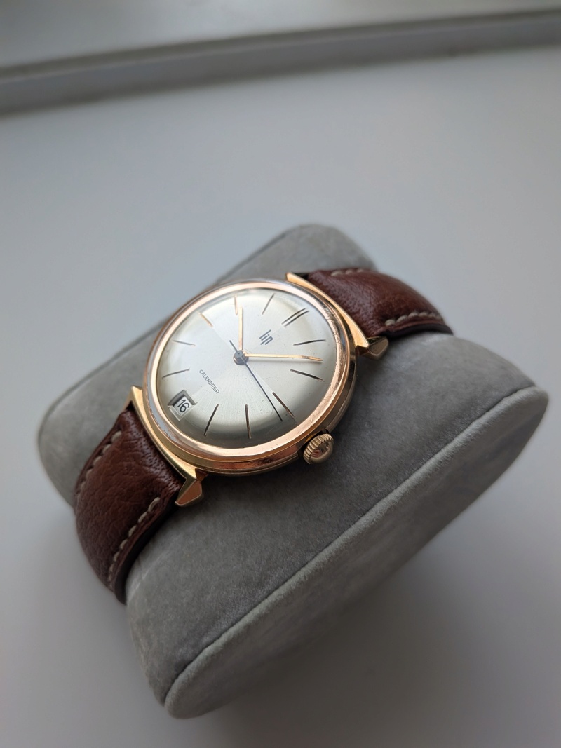 Je propose à la vente cette LIP calendrier. La montre est en excellent état (cf photo), le plaquage est en parfaite condition, tout comme le cadran, les aiguilles et le verre.