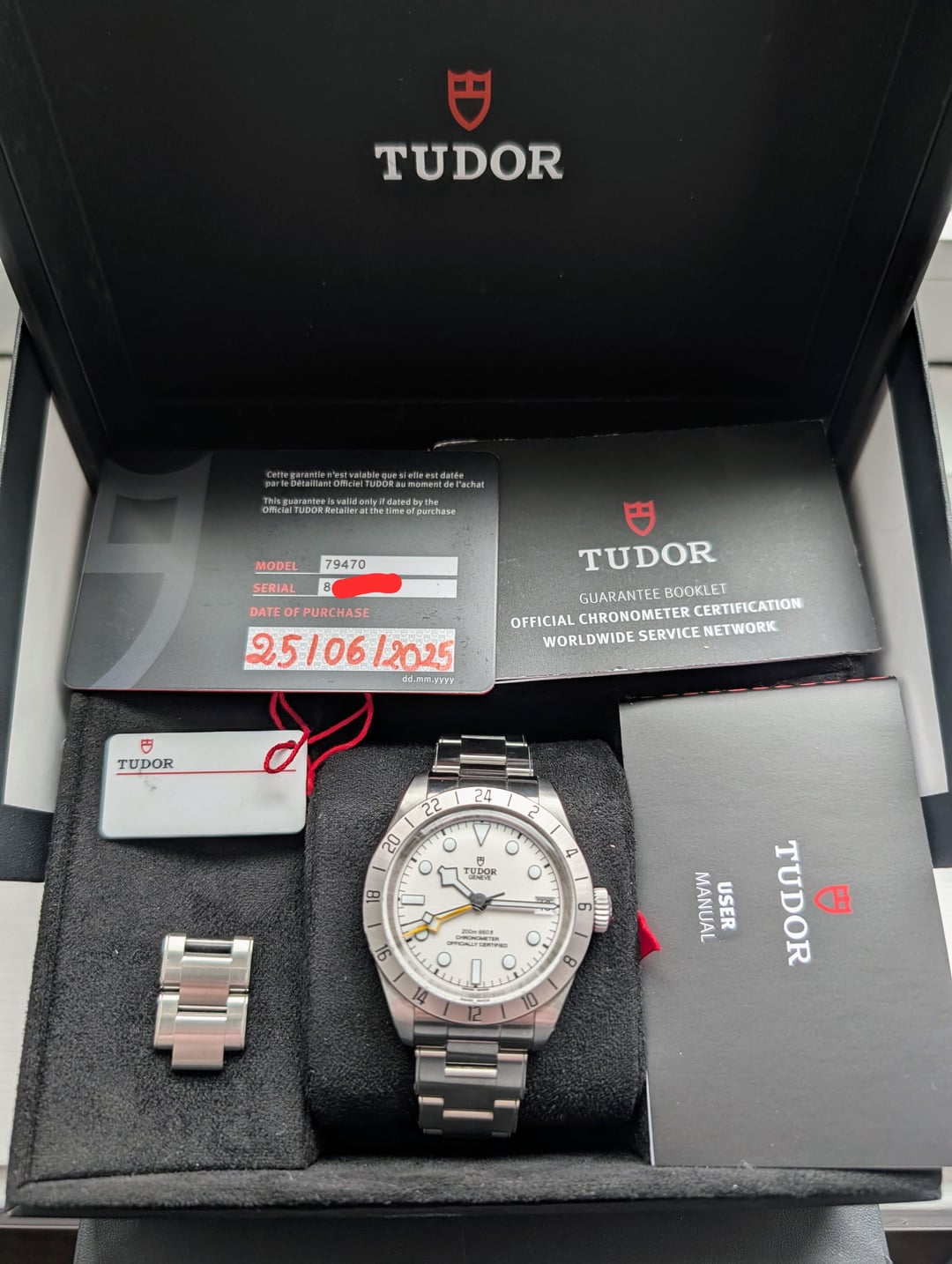**Tudor Black Bay Pro** **Reference: M79470-0004** **New 2025 Opaline Dial** **Price: $3949 + CONUS Insured Shipping. No Trades, Price is Firm** Includes: Inner/Outer Box, Watch, Hang Tag, Warranty Card Dated 6/25, Booklets, Full Links In very good pre-owned shape with minor signs of light wear. Running perfectly per my timegrapher, see photo below. Photos: [https://imgur.com/a/K36lqYD](https://imgur.com/a/K36lqYD) Time Stamp: [https://imgur.com/a/0lPvu3V](https://imgur.com/a/0lPvu3V) Timegrapher: [https://imgur.com/a/w8Jxz1P](https://imgur.com/a/w8Jxz1P) **Key Details & Specifications** * **Brand:** Tudor * **Model:** Black Bay Pro * **Reference:** **M79470-0004** * **Year:** **2025 new colorway** * **Case Size:** 39mm * **Case Material:** Stainless Steel * **Dial:** **Opaline (white)** * **Bezel:** Fixed steel bezel with 24-hour scale * **GMT:** True traveler / flyer GMT * **Movement:** Tudor Manufacture Caliber MT5652 (Automatic) * **Certification:** COSC Certified Chronometer * **Power Reserve:** Approximately 70 hours * **Crystal:** Sapphire * **Water Resistance:** 200 meters * **Bracelet:** Stainless steel with folding clasp