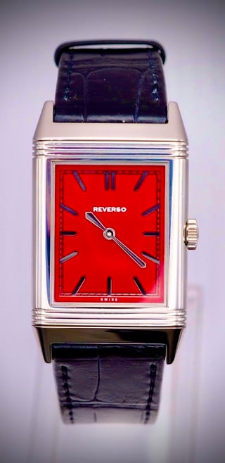 Hello watch lovers! I am selling my Grande Reverso Ultra Thin 1931 Rouge. This red re-edition was a boutique-only special edition originally released in limited quantities in 2012. The case is a slender 7.3mm thick. The dial is a sultry Rouge, which changes accents depending on the lighting. The hour-markers and baton hands are rhodium-plated. The watch absolutely stuns when paired with a dark suit, and pops when matched with jeans. The steel case measures up to the size of the Grande Reverso, being bold on the wrist despite its slenderness with dimensions of 46.8mm by 27.4mm. The 'REVERSO' signature is a reproduction of the early logo as depicted on the vintage model. The in-house caliber 822 measures just 2.95mm thin, beating at a rate of 21,600 A/h and has a 45-hour power reserve. The shock-protected movement (with a KIF antishock system) has 21 jewels and is manually wound. The watch was just serviced by JLC and is in like-new condition without any obvious signs of damage. The watch has perfect mechanical functionality. It has not been altered or personalized on its case-back. It comes with the original JLC black alligator leather strap with JLC-stamped tang buckle. The watch comes as a full set, including Jaeger-LeCoultre box and manual. I purchased it from Watchfinder, which is owned by the Richemont Group, the parent company that owns Jaeger-LeCoultre. It comes with a warranty from Watchfinder that extends until June, 2026, and the additional JLC service warranty covers the watch until October, 2027. I live in NYC and am happy to FaceTime or send more photos or answer any questions. I have done 4 other sales through various websites over the years and have made 8 purchases and can furnish references for them if requested. I appreciate that I am a private seller, but I am a surgeon with a very public job and I am happy to show you my contact information, face, website and cards to prove I am a real person. $15,999 + insured shipping