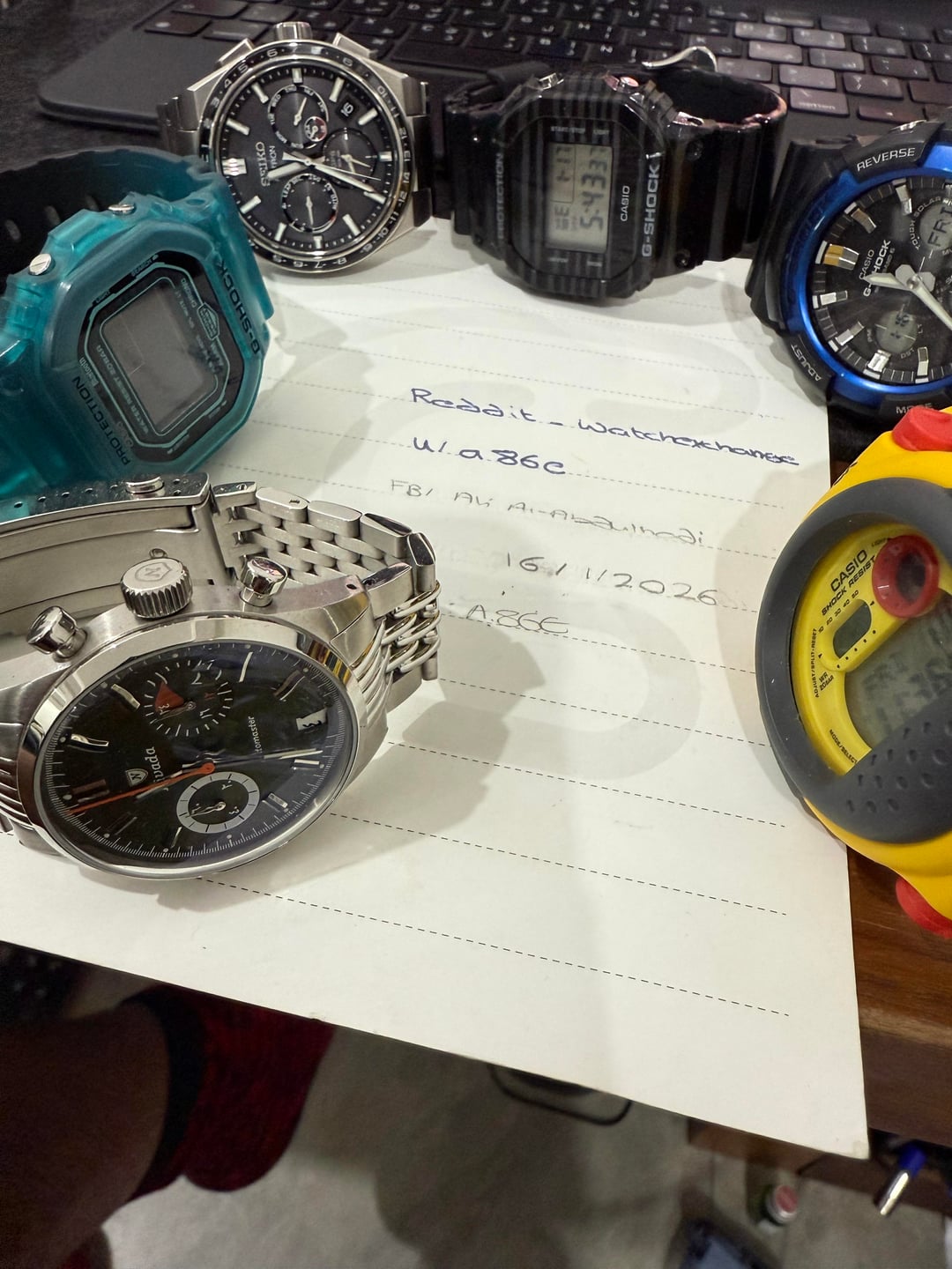 Hey all On hand is a used in very good condition Nivada Grenchen Perpétuel x JZ Case diameter:36 mm Case thickness:12 mm Case Material:Stainless Steel Lug width:20 mm Movement:VK 64 / Meca-Quartz Strap: Stainless Steel Bracelet / Orange Textile Water-resistance: 10 ATM Price: $650 shipped Not interested in trades Please read the disclaimer before shooting a PM Thanks ⸻ Watch Sale Disclaimer: • I am a private collector, not a store or reseller, and I am not affiliated with any watch brand mentioned in this listing. • The watch will be shipped from Kuwait via FedEx, and a tracking number will be provided to the buyer once dispatched. • Buyer is responsible for any customs duties, VAT, or import taxes that may be charged upon delivery, depending on your country’s regulations. • I welcome all reasonable requests for additional information, including more photos and/or videos to verify the watch and its condition. • Payment terms: • Established Watchexchange members with verifiable feedback may pay via PayPal Goods & Services only, I do not accept Friends & Family nor Zelle • New or low-feedback users must pay via wire transfer. All watches are sold as-is, with details described to the best of my knowledge. Serious inquiries only, please. Thanks for looking