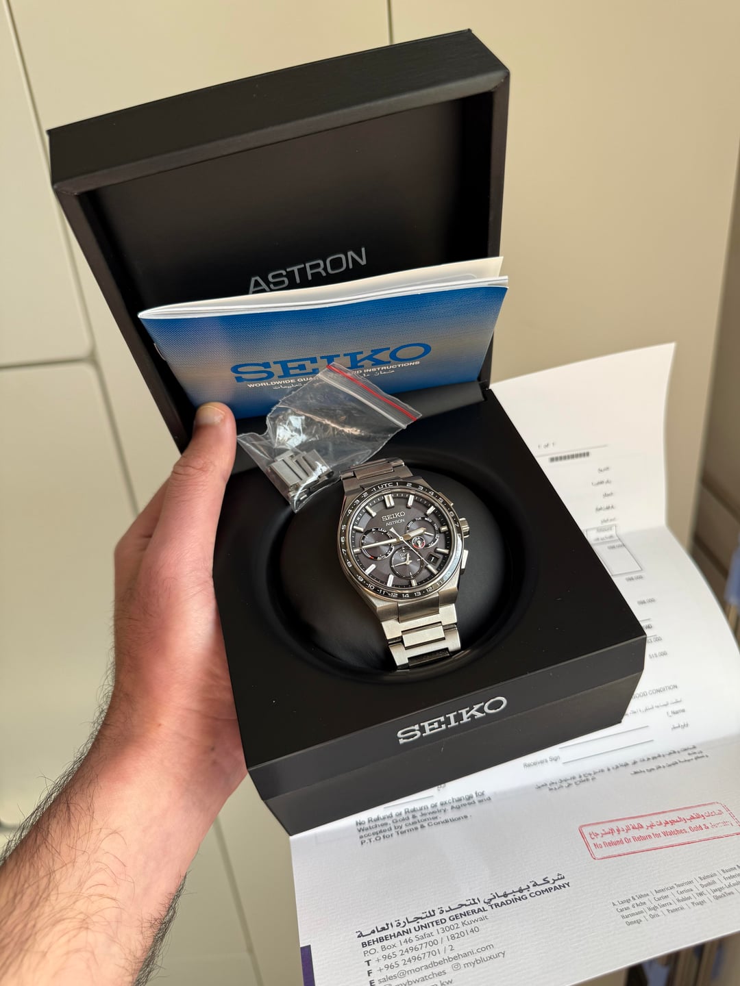 Hi On hand is the Seiko Astron Chrono solar GPS ref SSH111J1 Watch has been used, signs of wear show on the buckle and on various parts but overall in a very good condition Comes with box and warranty, DOP 13/8/24 On to the not so great part, watch is missing 2 links and 1 pin collar, fits on a 18.5 cm wrist Asking price: $1400 Payment: Wire transfer Please read the disclaimer before shooting a PM Thanks ⸻ Watch Sale Disclaimer: • I am a private collector, not a store or reseller, and I am not affiliated with any watch brand mentioned in this listing. • The watch will be shipped from Kuwait via FedEx, and a tracking number will be provided to the buyer once dispatched. • Buyer is responsible for any customs duties, VAT, or import taxes that may be charged upon delivery, depending on your country’s regulations. • I welcome all reasonable requests for additional information, including more photos and/or videos to verify the watch and its condition. • Payment terms: • Established Watchexchange members with verifiable feedback may pay via PayPal Goods & Services only, I do not accept Friends & Family nor Zelle • New or low-feedback users must pay via wire transfer. All watches are sold as-is, with details described to the best of my knowledge. Serious inquiries only, please. Thanks for looking