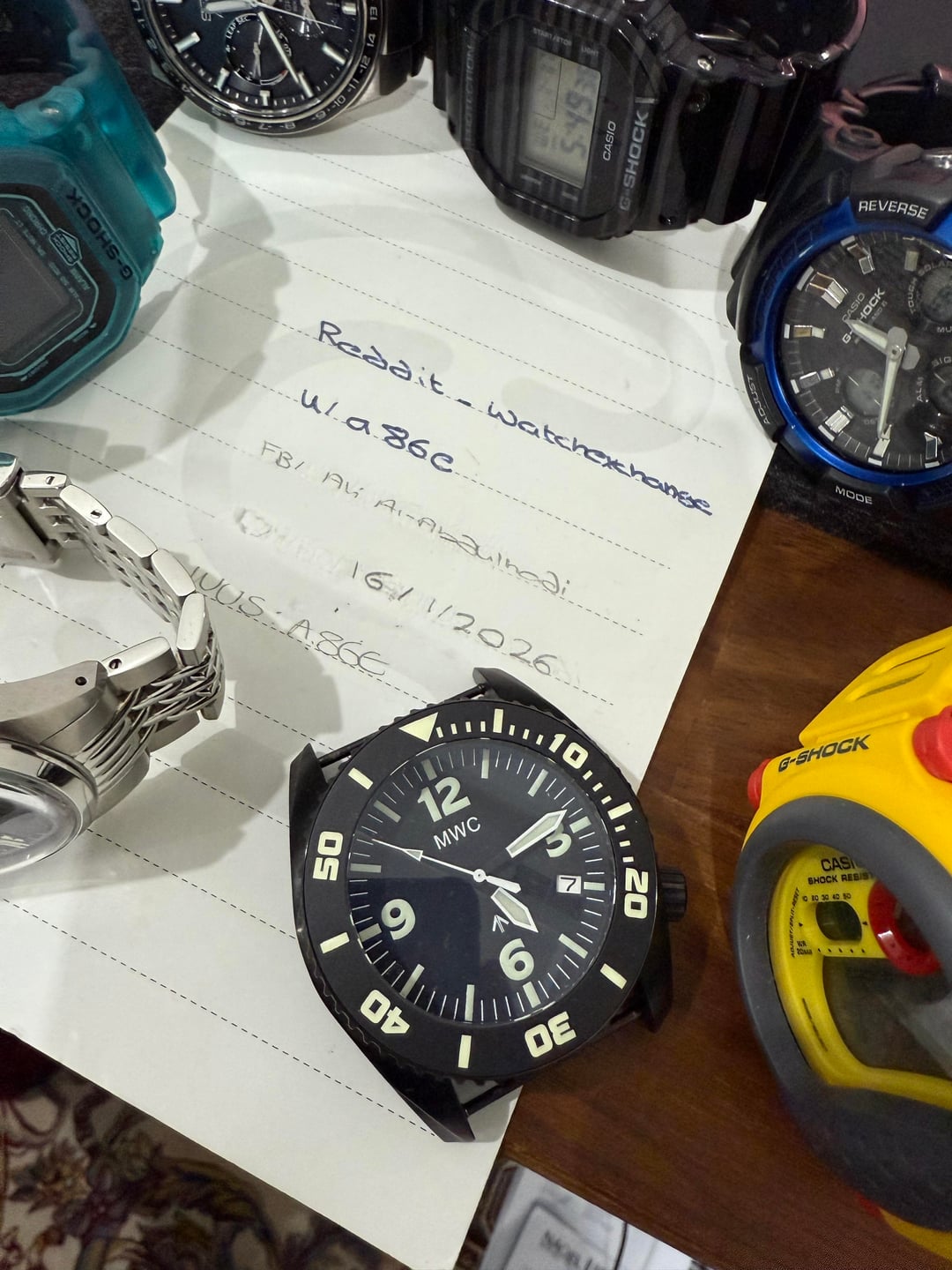 Hey all, I have this tank of a watch, the MWC Depthmaster. NATO is clean, comes with box too. Has a mark on the bezel.but nothing Major. Overall it's a clean example as shown by the pictures. Retails at $660 Specs: Movement: 24 Jewel Automatic NH35A with hacking function and a 41-hour power reserve Water Resistance: 100ATM / 3,280ft / 1000M Crown: Screw-down locking Helium Escape Valve: Yes Dimensions: Width: Including Crown 47mm (Excluding Crown 44mm) Thickness: 18mm Crystal Diameter: 31mm Lug to Lug: 48mm Weight: 140g Bezel: Unidirectional non-reflective with ceramic insert Crystal Type: Sapphire with Anti-Reflective Coating* Case: 316L PVD Stainless Steel Illumination: Luminova on markers, hands, and bezel Strap: 24mm NATO Webbing Strap Price: $475 shipped TYD, loosely negotiable Not interested in trades Please read the disclaimer before shooting a PM Thanks ⸻ Watch Sale Disclaimer: • I am a private collector, not a store or reseller, and I am not affiliated with any watch brand mentioned in this listing. • The watch will be shipped from Kuwait via FedEx, and a tracking number will be provided to the buyer once dispatched. • Buyer is responsible for any customs duties, VAT, or import taxes that may be charged upon delivery, depending on your country’s regulations. • I welcome all reasonable requests for additional information, including more photos and/or videos to verify the watch and its condition. • Payment terms: • Established Watchexchange members with verifiable feedback may pay via PayPal Goods & Services only, I do not accept Friends & Family nor Zelle • New or low-feedback users must pay via wire transfer. All watches are sold as-is, with details described to the best of my knowledge. Serious inquiries only, please. Thanks for looking