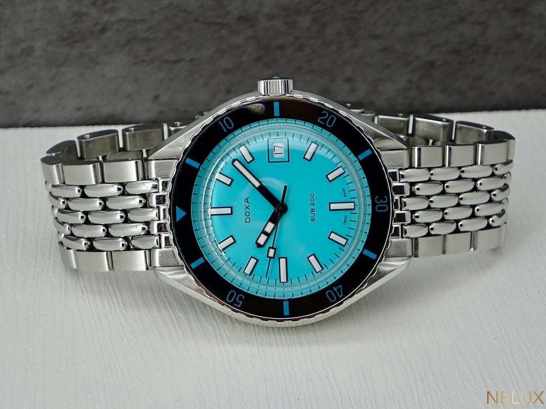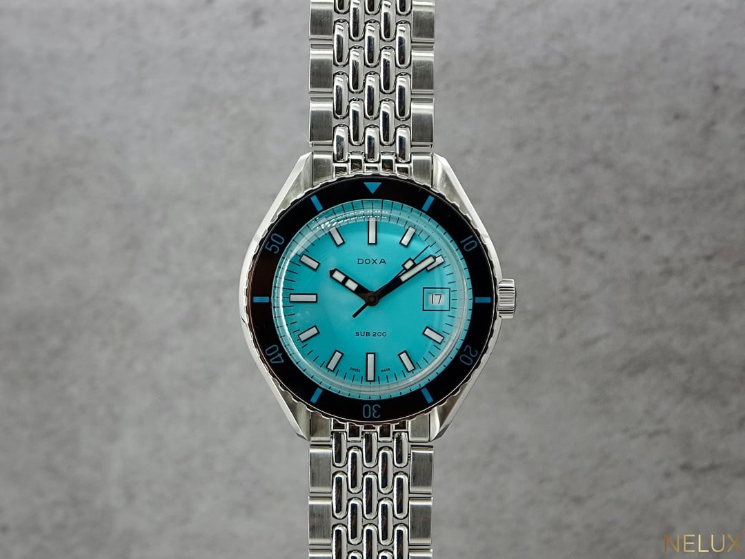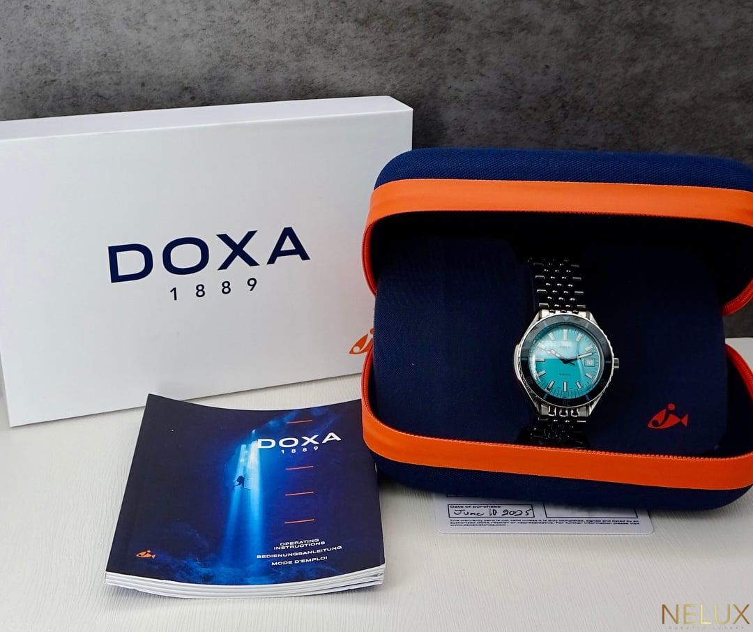 [timestamp](https://imgur.com/a/jZ5h9X0) Offered for sale is a **2025 Doxa Sub 200 Aquamarine** (ref. **799.10.241.10**) on the stainless steel bracelet. This model delivers classic DOXA dive-watch styling with a vibrant aquamarine dial, robust build quality, and excellent everyday wearability. This example comes as a **complete full set** and shows **signs of wear on the bracelet** from regular use. The **case, bezel, dial, and crystal are otherwise very clean**, and the watch runs properly. Model: Doxa Sub 200 Aquamarine Reference: 799.10.241.10 Year: 2025 Case size: 42mm Movement: Automatic Crystal: Sapphire Water resistance: 200m Bracelet: Stainless steel Includes: Full set (box, papers, warranty card) Condition: Bracelet wear; otherwise very clean Location: Naples, FL **Price:** $1,000 shipped **Payment:** Venmo, Zelle, PayPal (+fee if G&S), or Wire **Trades:** Open to trades, no cash on my end All sales are final unless the item is not as described or pictured. Willing to FaceTime, answer questions, or provide raw photos upon request. **Full inventory:** [https://neluxco.com/collections/all](https://neluxco.com/collections/all)