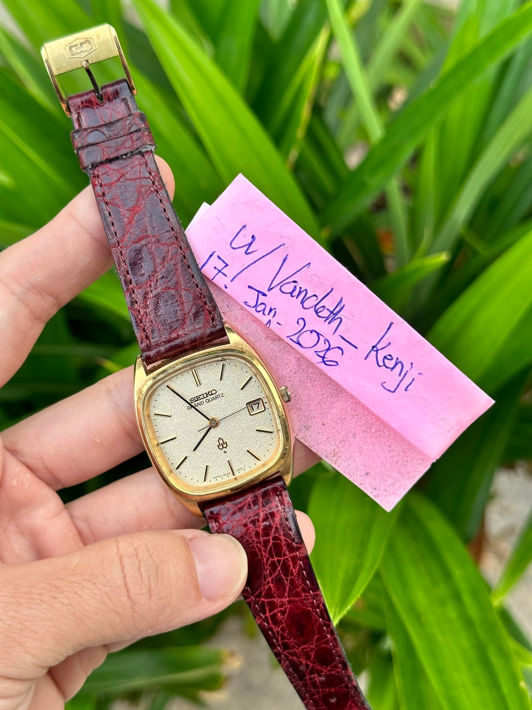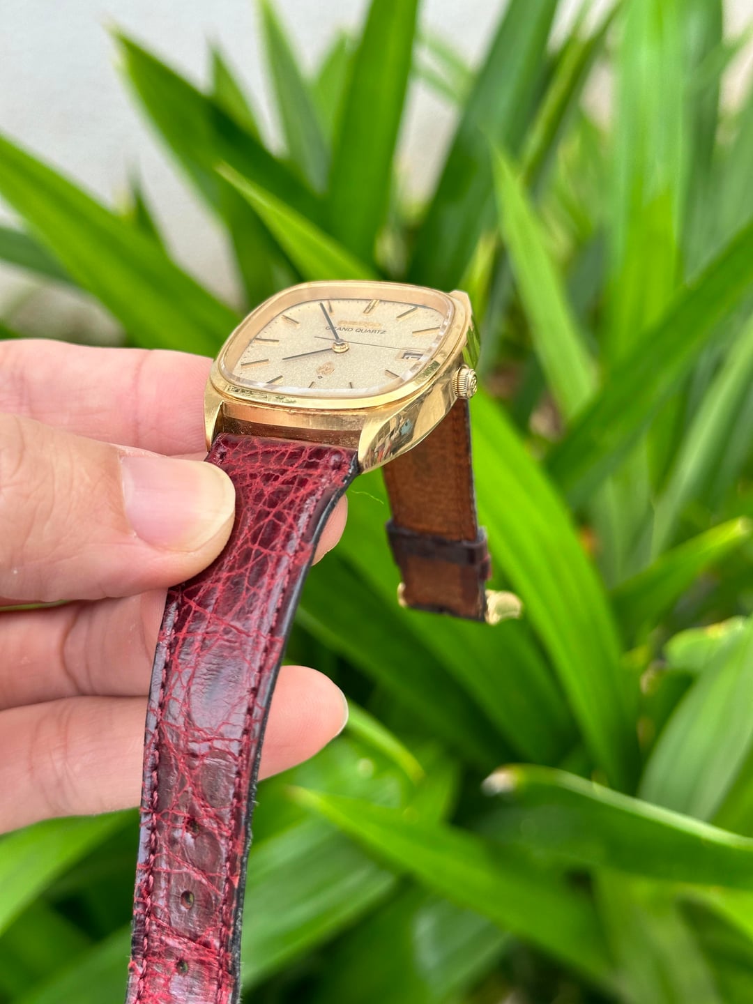 Up for sale, Rare Grand Seiko Quartz Tank, produced in November 1976, classic and vintage style. Grand Quartz was a top tier quartz watch brand of Seiko, same tier as Grand Seiko. High precision ±5 seconds/month at that time. • Movement: 4842-5011 Quartz • Date only • Dimensions of Case: 34mm, lug to lug: 41mm, thickness: 11mm • Gold plated case sharpness all in original condition • Original gold sand texture dial • Performance: serviced and new battery • Come with leather strap and original gold GQ buckle Timestamp: https://photos.google.com/share/AF1QipPXc6YbvbzcG48UVYFQ2_6AvocReq0qzABbW24gS3tKjfY-bkIxmowuqBXzpM-7aQ?key=SWlRWFpEYUZoS0ViS052d05JRjdUUXltZjUyTm9B Album: https://photos.google.com/share/AF1QipOt3L-587akLi0gpXwglzfPWszETgXoE1UhiPnWOW1wwZWXEqDU7ZzKPPKnctHtJg?key=V1ZCUzhqV1NUUmhaMUJzMTdUS0h5T3RPUjItNEdB I’ve been selling watches in this sub years now, please check my transaction flair. I’m asking for USD 549 Net via PayPal F&F or direct wire including DHL Express Worldwide shipping with tracking number. Thank you. DHL Express -> US conus, North America, Europe, Australia: 3-5 days DHL Express -> UAE Dubai: 1-2 days