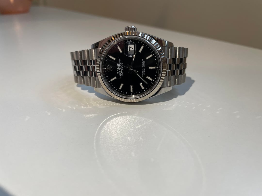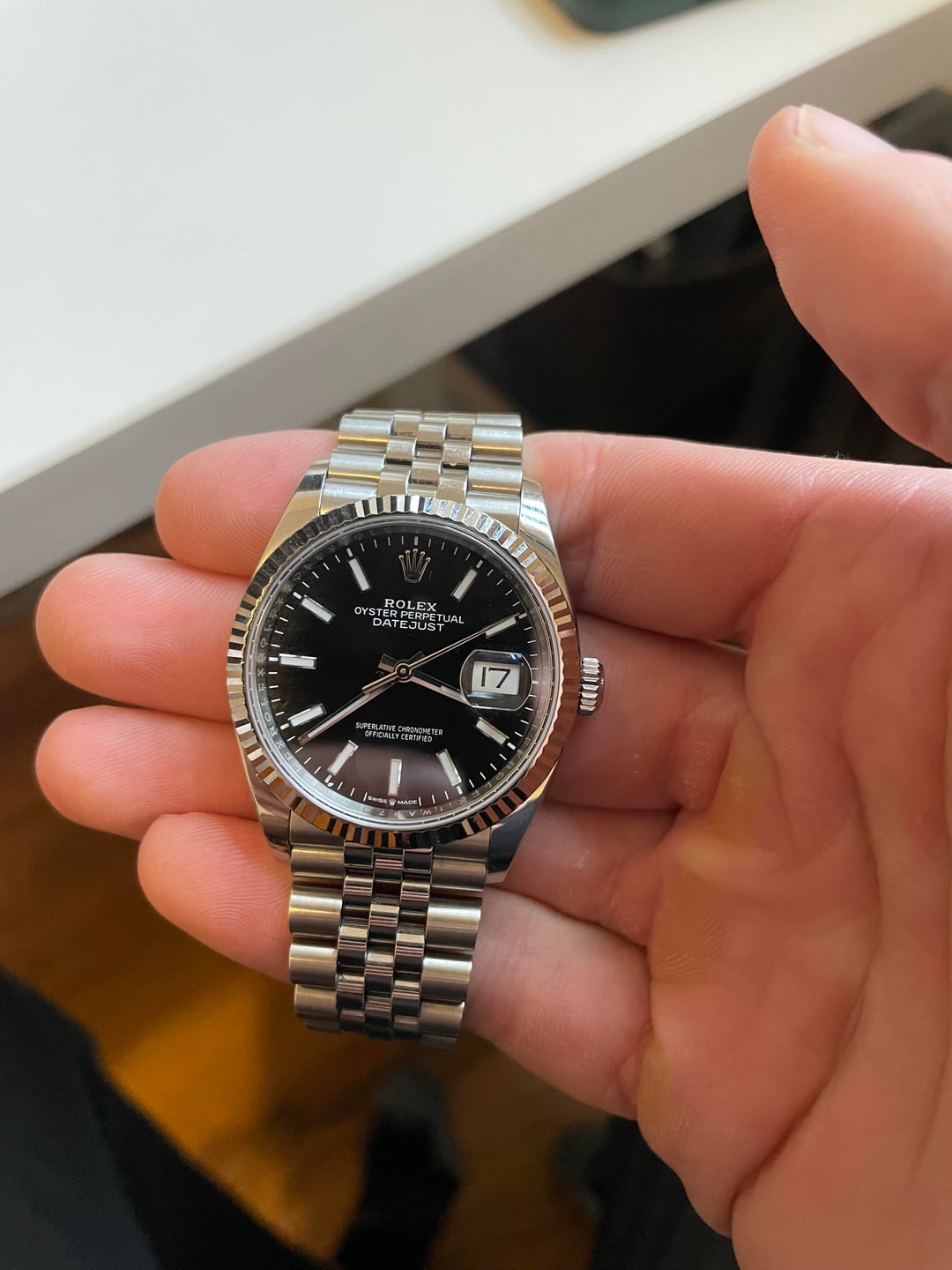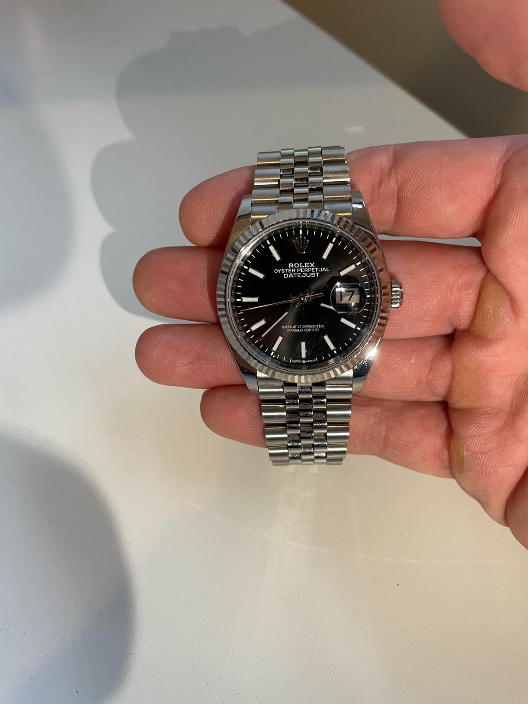 Looking to sell my 2019 Rolex Datejust for $9.5K to put toward my next watch. Full set. Solid condition. Clasp on the bracelet shows wear from a few years in rotation. Purchased from a reputable gray market dealer (email receipt and correspondence, provided upon request) in Dec 2022. Strong preference toward in person deal in NYC. Offers that are local will be strongly favored. No trades. Thanks for looking. Send me a message and we can chat / FaceTime.