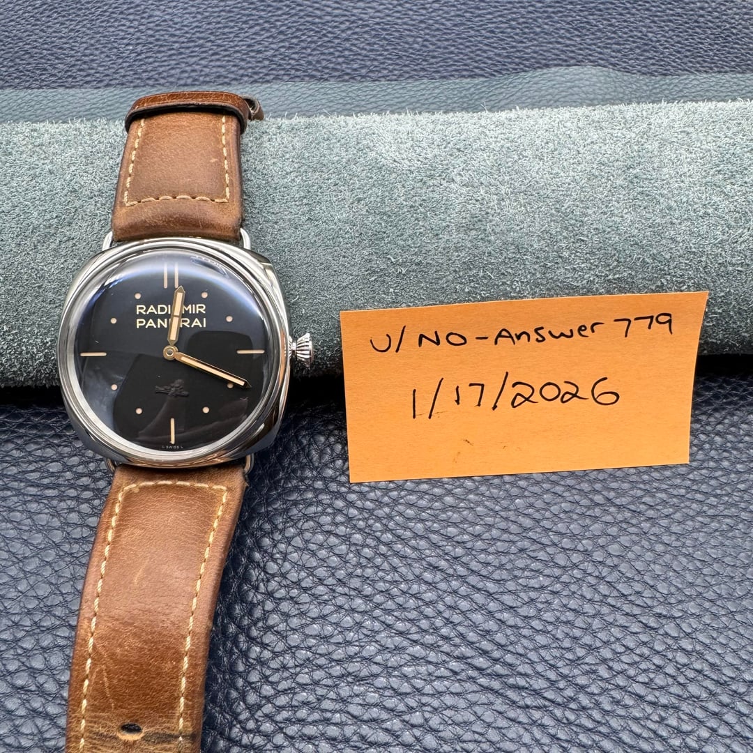 **FOR SALE: Panerai Radiomir 3 Days PAM00425 47mm 2014 Box & Papers** The Panerai Radiomir PAM00425 is a pure expression of Panerai’s heritage, featuring the classic cushion-shaped Radiomir case with wire lugs and a clean, minimalist dial that leans heavily into the brand’s military roots. At 47mm, it has serious wrist presence while remaining surprisingly elegant thanks to its slim profile and simple layout. The black sandwich dial with luminous numerals keeps everything highly legible, and the absence of a crown guard gives it a more traditional, vintage feel compared to the Luminor line. Powered by the in-house P.3000 manual-wind movement with a full 3-day power reserve, it’s a watch that’s as mechanically impressive as it is visually striking. This 2014 example is in Excellent condition and comes complete with box and papers. **Details:** • Reference: PAM00425 • Size: 47mm • Water Resistance: 100m • Movement: Panerai Calibre P.3000 manual wind • Power Reserve: 72 hours **What’s Included:** Everything you see in the pictures comes with the watch. Any timepiece not still under the manufacturer’s original warranty includes a one-year service warranty beginning on date of purchase from us at no additional charge. **Condition:** This timepiece is in Excellent condition. Pictures are shot with a high-resolution DSLR camera and are an accurate reflection of the condition. The movement is running well and is not in need of servicing. **Yours for $4,400** We’re new to Reddit but have hundreds of 5-star reviews and references on other platforms. Reach out via DM or call/ text us at (571) 445-4697 if you’re interested. Thanks for looking!