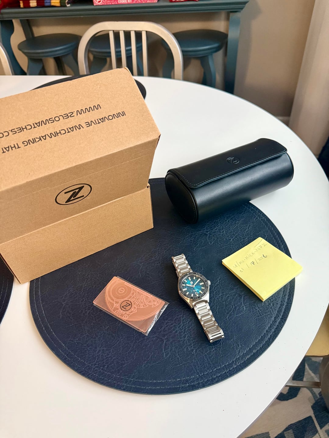 Hello WatchEx, Up for sale is a stunning Zelos Blacktip Whirlpool Teal, a ridiclously good looking and high quality piece under $500. Mint and full kit. $475 shipped CONUS zelled. Timestamp in last photo. Thanks!