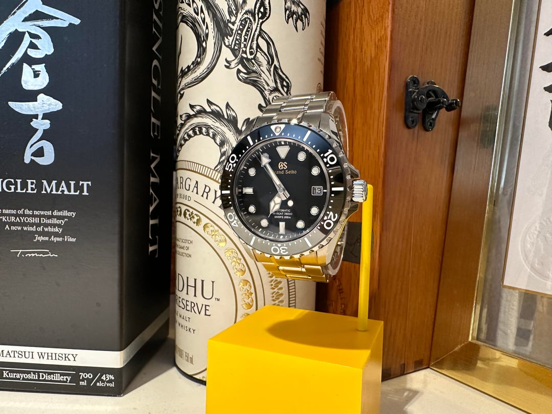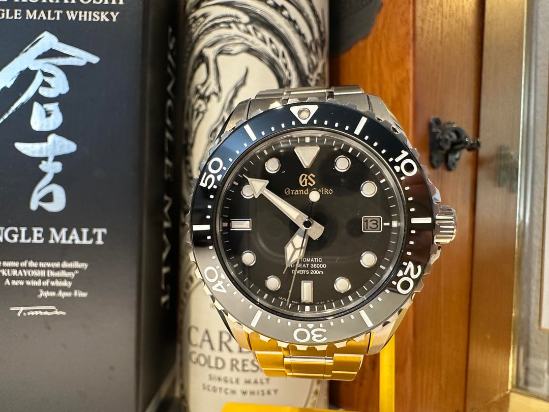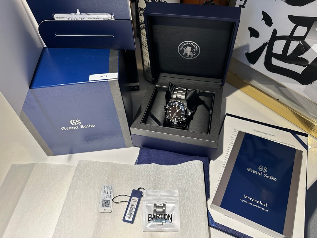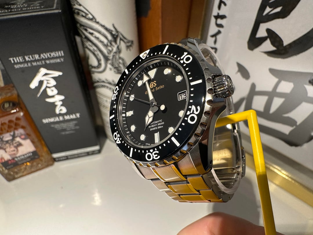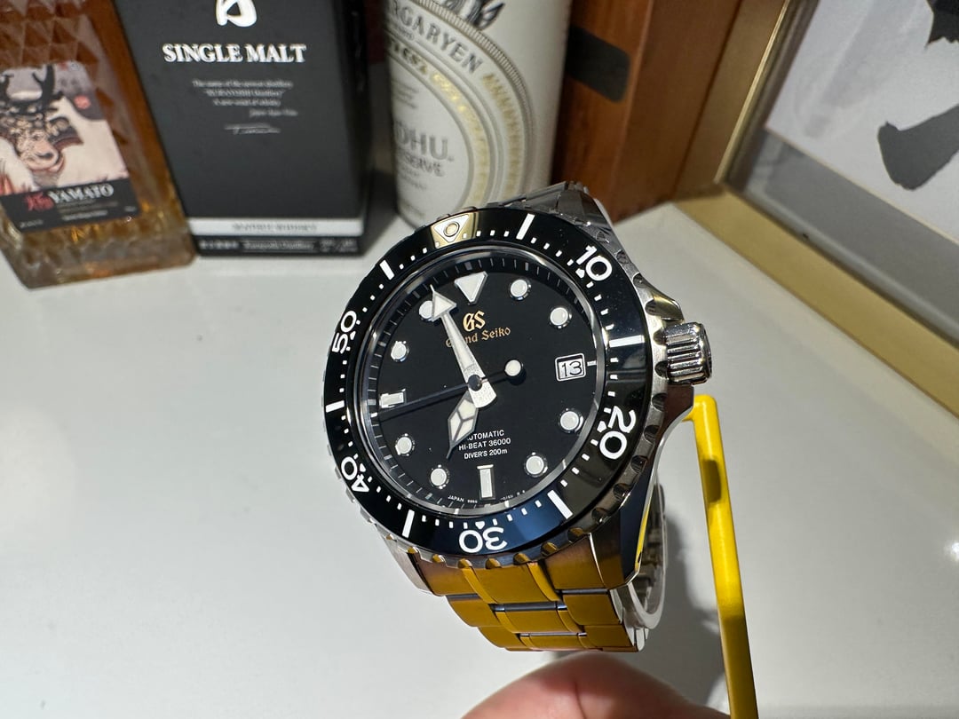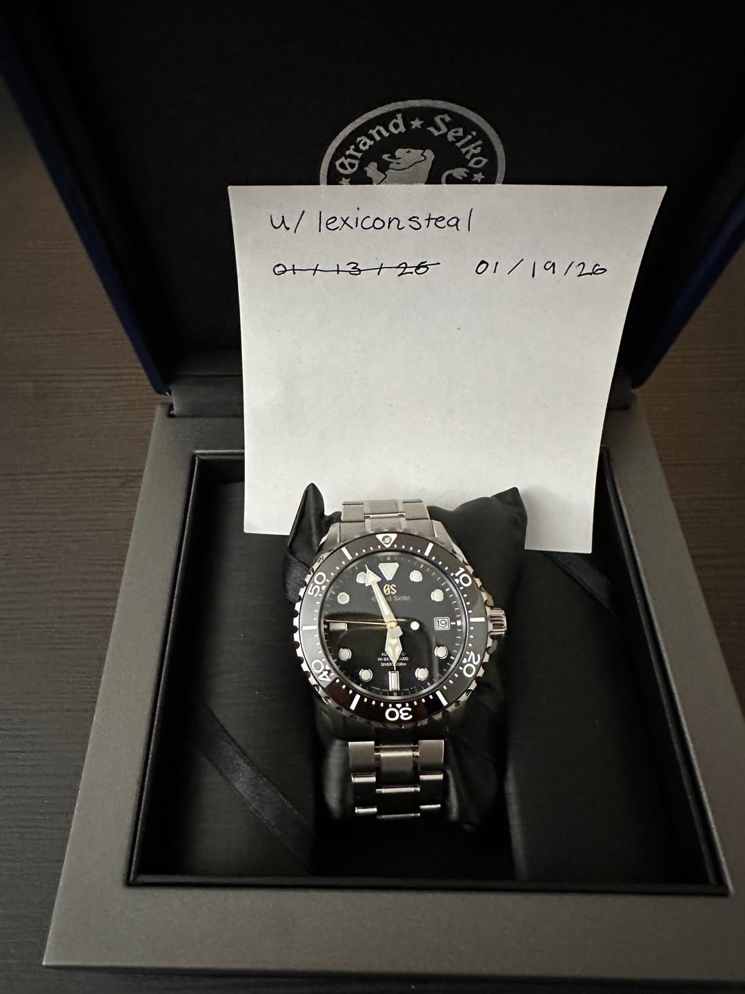 \*Reposting with a lowered price\* This GS Hi-Beat Diver is the kind of watch that looked like it ticked a lot of boxes for me; it was a larger watch (43.8 mm), titanium, some nice polish all around, and a clicky bezel that was unlike other watches I have had, and most importantly a micro adjust in the form of Seiko’s diver extension. What went wrong? It’s a little too big all around. While I love the idea of it and seeing it in the watch box, it’s not fitting me in the ways I need it too. I am also a sensitive guy apparently, because the raised GS logo bothers my wrist a bit. The watch is in good condition. The clasp has a lot of superficial scratches from 200m of desk diving. There are no deep scratches or blemishes on the crystal, case or bezel as far as I can see, but the slides have a lot of hairlines as happens with polished titanium. The case back has a nice set of scratches from the bracelet, which I tried to capture in the photo. It keeps time well enough, with a loss of about a second per day with regular wear. The watch will come with box, warranty card, tags, all the fun booklets, removed links, plus weirdly a stainless steel link I got when I bought it on Chrono24. Loking for $3900 OBO CONUS shipping included, Venmo and Paypal F&F with good history, G&S for a slightly higher split cost.