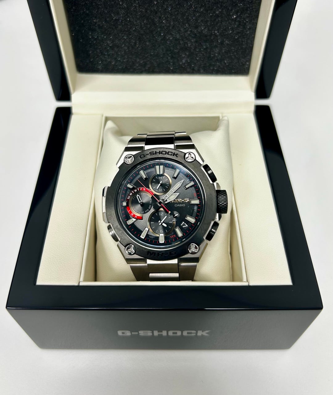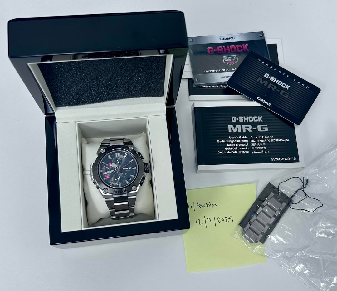 Hi, for sale is my MRG-B1000. I love it but my MRG squares dominate the wrist time. Comes with box, manual and warranty card along with all the links. There are some minor scratches on the clasp and 9 o clock side of the case but it is in great shape. Zelle, Venmo or PayPal F&F and shipping conus.