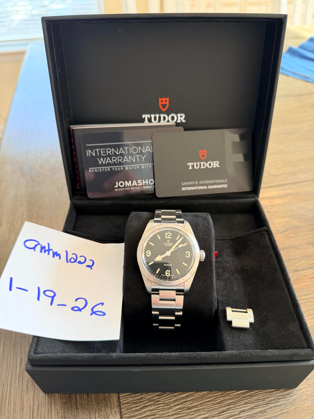 Hi all... Selling a Tudor Ranger today. * **Model:** Tudor Ranger 39MM Black * **Condition:** Very good. The clasp and bottom end of the bracelet have usual desk diving scratches. The case and crystal are mint. * **Details:** The original box, manuals and warranty card are included. I purchased this from Jomashop about a year and a half ago. The original warranty card is dated December 2023. * **Asking:** $2,500 * **Payment:** Zelle, Venmo, Apple Cash or PayPal F&F * **Shipping:** CONUS shipping included in the price. Not interested in any trades at this time. Let me know if you have any questions. Thanks!