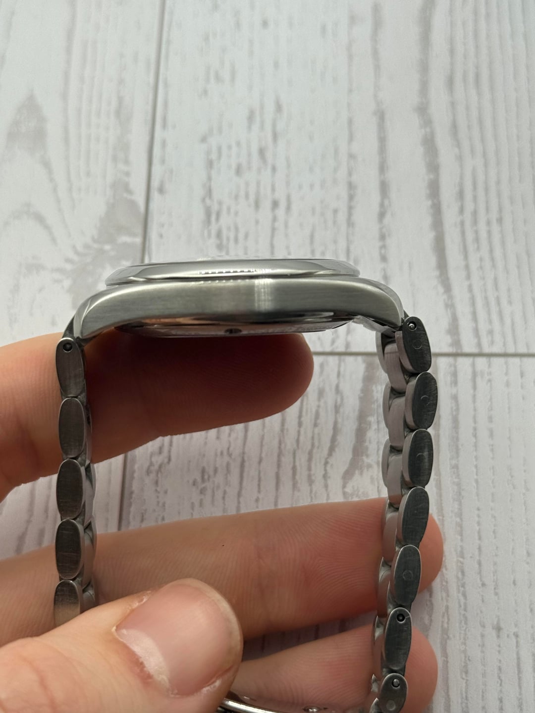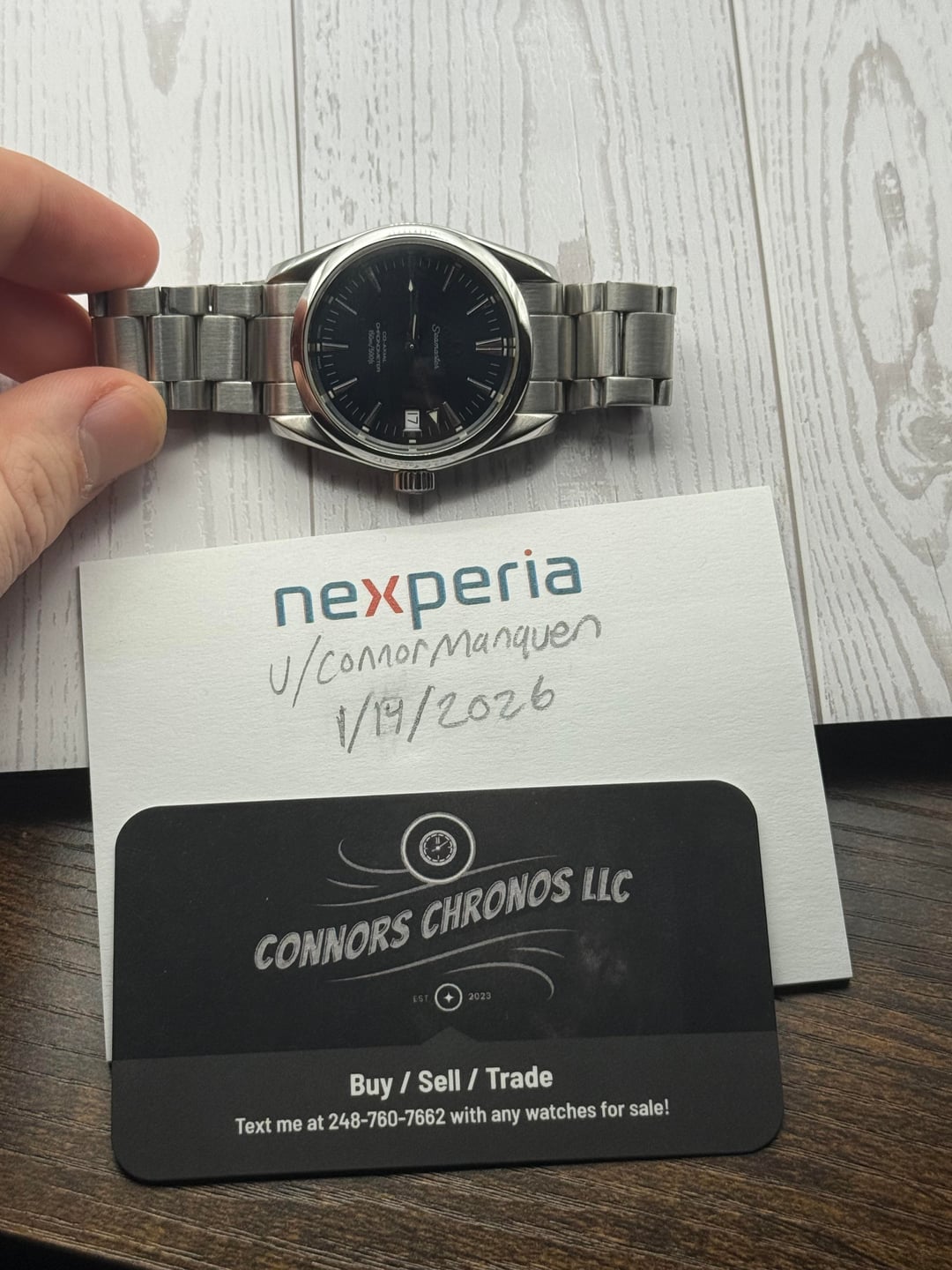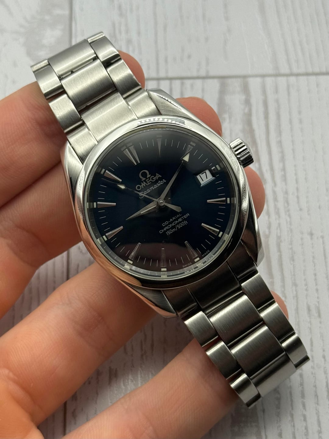 This discontinued mid-size Aqua Terra model (ref. 2504.80) features a highly sought-after 36.2mm case. It showcases a stunning navy blue sunburst dial and is powered by Omega’s innovative Co-Axial automatic movement. The watch is fitted with a domed sapphire crystal with anti-reflective coating on the underside, enhancing clarity and legibility. Completing the piece is one of Omega’s most elegant stainless steel bracelets, noted for its seamless, hidden clasp design. A rare and refined timepiece for collectors or those with a preference for classic proportions. This watch is in excellent overall condition with minimal wear. Comes as watch only sale, will fit between a 6.75 and 7 inch wrist. Please see photos for accurate representation of wear. Asking - $2,650 Shipped to the CONUS or best offer! Zelle or BankWire preferred, paypal f&f also an option for buyers with strong transaction history on the sub. Thanks for looking! Please message me with any questions.