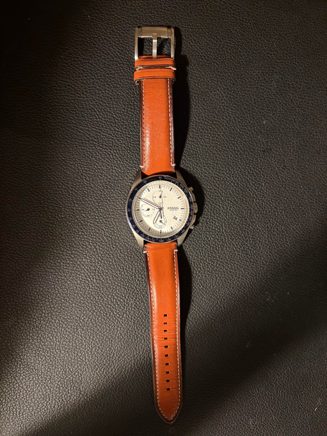 Selling a Fossil watch that has been stored in my desk for a while! Probably needs a new battery. Cosmetic-wise, no significant scratches or dents. Can ship via USPS/UPS! Asking $50 shipped, but price is not firm.