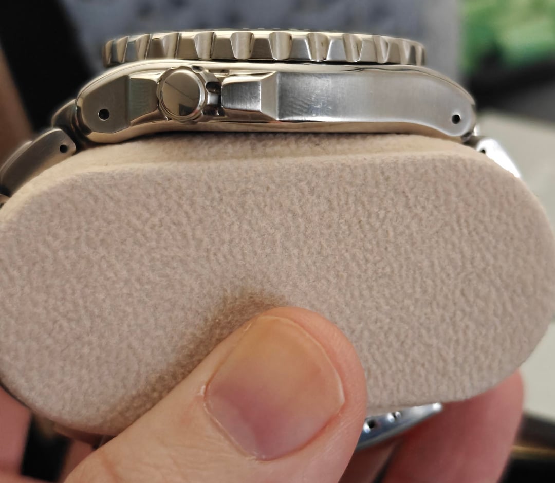 Up for sale today is my Seiko SRP 043k, aka the spork. I don't want to sell this one, but I've got some hospital bills piling up from a recent surgery, such is life. These are getting harder and harder to find, especially in this condition. There are no dings or dents on the case or bracelet, just some light scuffs and desk diving marks which I have photographed. There is also a tiny scratch on the crystal, see the last photo. Included is an aftermarket sapphire crystal by Yobokies, which I never got around to installing. The watch also comes with a rubber strap, the original box and instruction manual, and all links. Please let me know if you require additional photographs, asking $900 or best offer, no trades at this time please.
