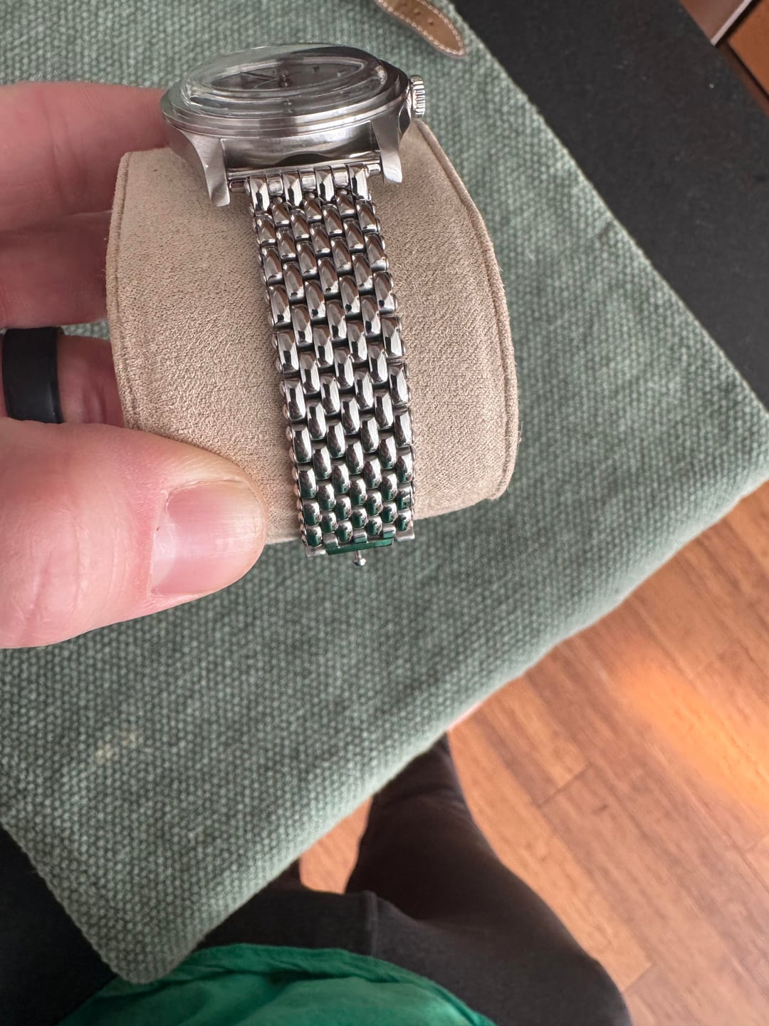 Hi all, A bit of a catch and release here. Only wore a few times - mint condition. I purchased from Grand Central watch. Surprisingly, this is my most complimented watch. Has a great style and shine about it, the flat beads of rice adds an awesome vintage look. Asking only $320 box & papers. Cheers, HP