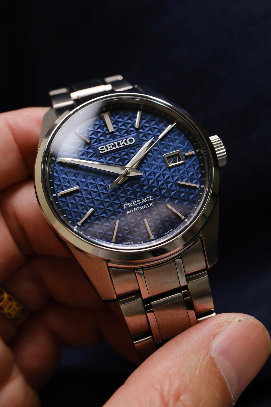 Hi R/watchexchange Up for sale Seiko Presage SARX077 / SPB167 with the stunning blue geometric “Asanoha” dial. One of the best dial executions Seiko has ever done in this price range. *Condition: Very Good and run perfectly. There are a few minor scratches. But nothing major or noticeable during wear. *Details: -Movement: 6R35 Automatic with 24 jewels, 21600vph, 70H power reserve. Hand Winding & Hacking Stop -Case Size: 39.3mm * 11.1mm, lug to lug 47mm -Crystal: Sapphire With AR coating -Bracelet: Steel With Hard Coating, Fits up to 20cm (7.8 inches) *Included: Box, papers, manual *Timestamp: https://i.postimg.cc/ZRjKSB9Q/DSCF8303.jpg *Photos: https://postimg.cc/gallery/nHTNbNT *Price: $590 Shipping worldwide via UPS about 4-5 days (insured & tracking) ( tariffs/duty fee covered by me ) *Payment: PayPal FF or GS (4.6% for buyer) Let me know if you have any questions or for more pictures. Thanks for looking!