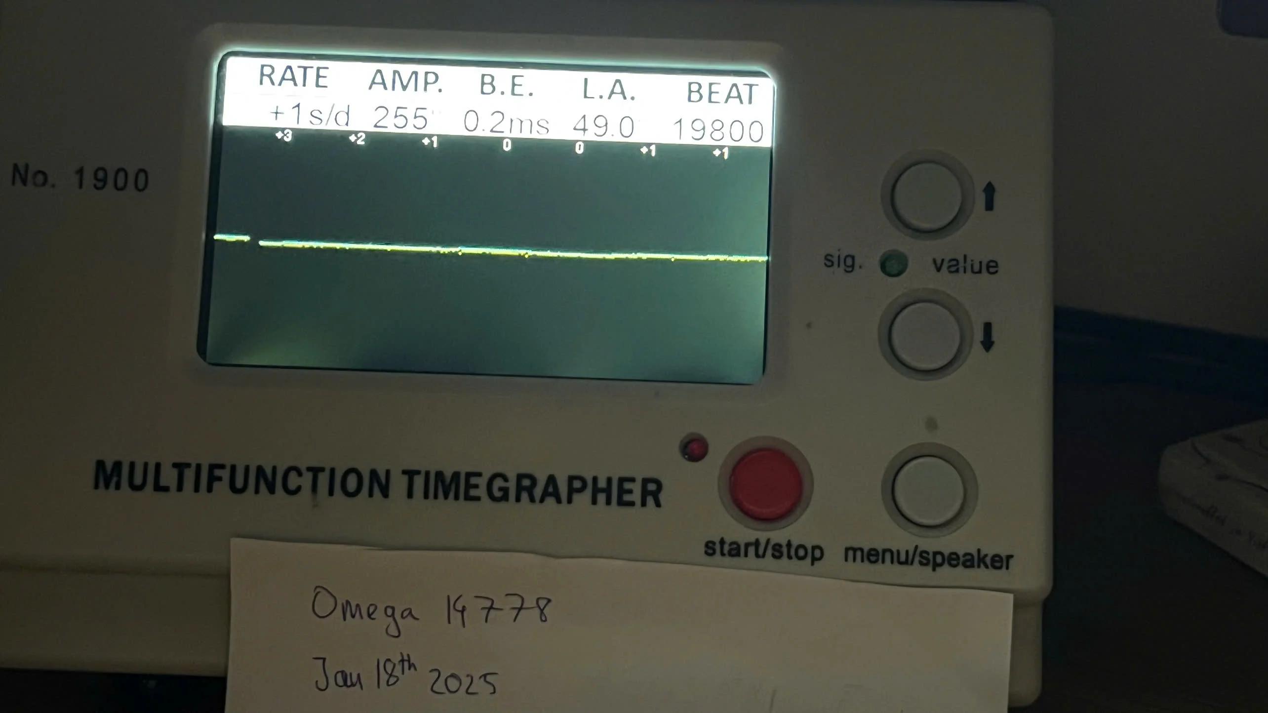 Timegrapher: +1 s/d, 255 amp, 0.2 ms BE (LA setting 49.0), 19,800 bph.