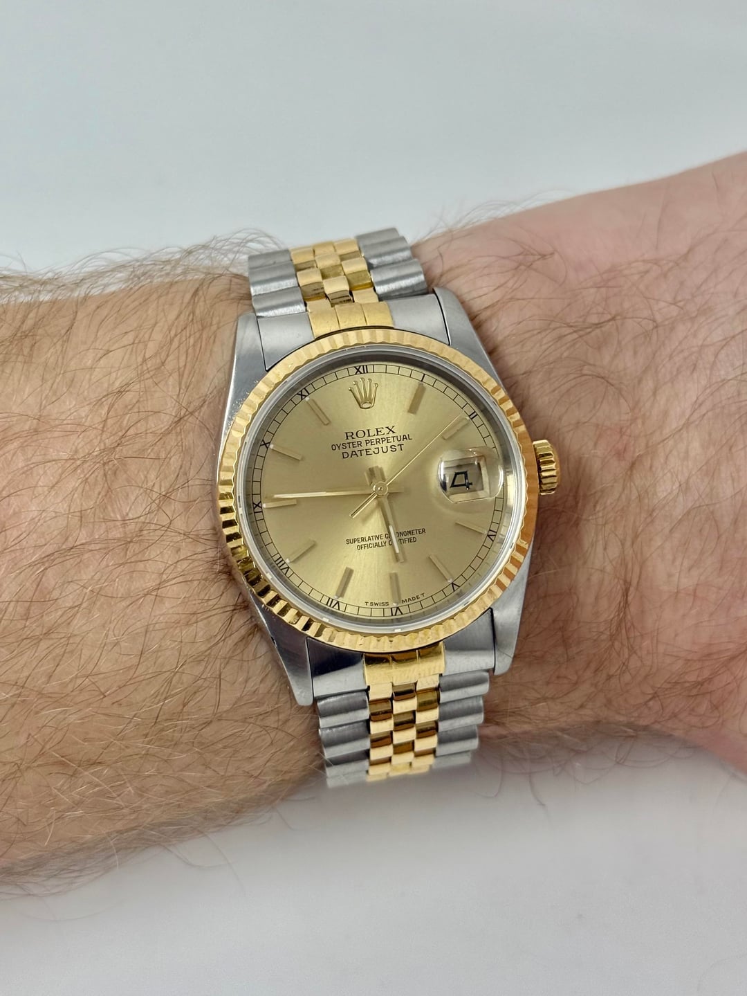 | Rolex Datejust 16233 Two Tone 18k Steel Jubille 36mm Ivory Roman Dial vbctimepieces (2) |