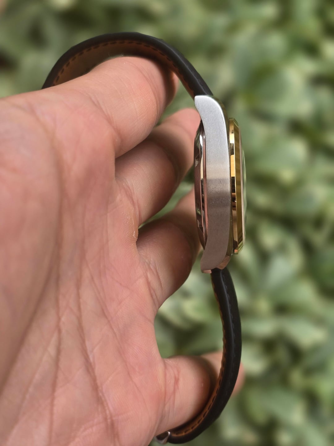 For sale is a mint Omega Seamaster Aqua Terra. Comes with box and papers. This model is now discontinued, but I think the teak style dial stands out more than the recent AT styles. The leather strap is a recently purchased Artisan strap with a OEM Omega buckle. The case is yellow gold and stainless steel. The watch presents in great mint condition and runs perfectly. Seeking $4k USD. Located in Australia, will post worldwide at your expense. Feel free to ask if you have any questions. Payment via PayPal please.