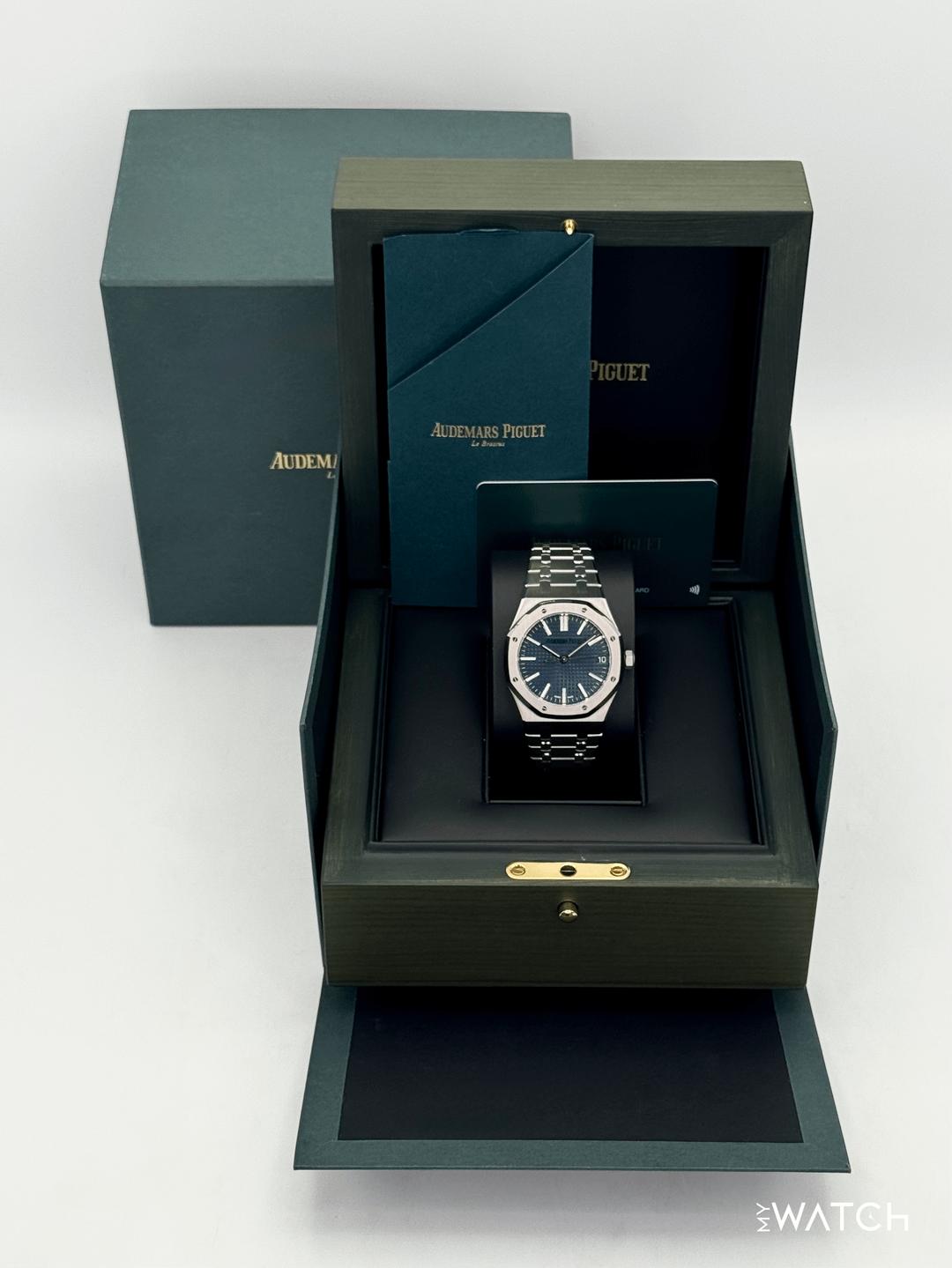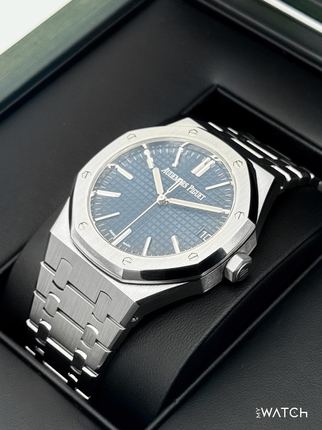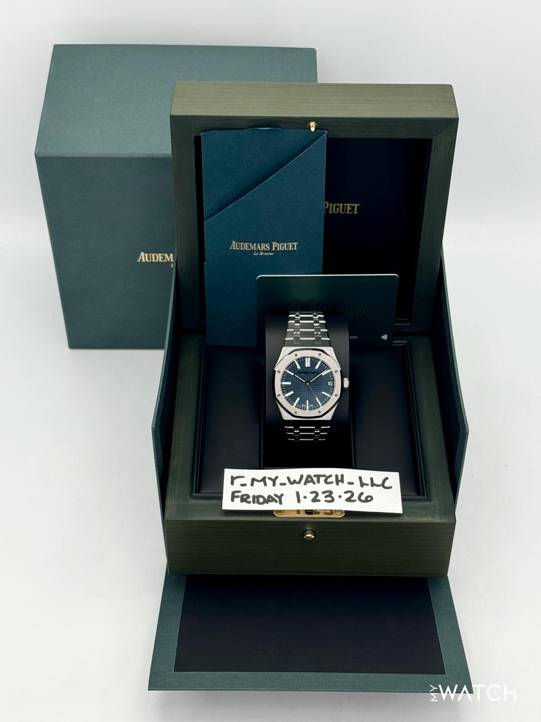 🔵**2023 Audemars Piguet \ Royal Oak \ 41mm 15510ST Stainless Steel Blue Dial** 🔵**TRADE or SELL us your luxury watch, all brands considered. Message me details.** **Includes the following:** **✔️Original Audemars Piguet Double boxed** **✔️Box and Papers - Yes** **✔️Audemars Piguet Warranty card** **✔️5 year manufacturer warranty** **✔️Reference #: 15510ST.OO.1320ST.01** **✔️Size: 8.0inch (Full Links)** **✔️Watch is in excellent overall condition. Please see photos for details.** **✔️Trades welcome** Business Name: **My Watch LLC** LOCATION: Oak Park, Michigan ✔️[MyWatchLLC.com](http://mywatchllc.com/) for current inventory ✔️Google Business Listing [https://g.co/kgs/Cmd6FPW](https://g.co/kgs/Cmd6FPW) ✔️Business Hours M-F 9-6 ✔️Facetime/Video chat/calls welcome to view the watch interested. ✔️Contact: 248-422-0909 via text or call for quickest response. 🟢TERMS: Visit [MyWatchLLC.Com](http://mywatchllc.com/) for payments accepted 🟢REFERENCES/REVIEWS: We are well reviewed on all platforms from google, trust pilot, rolexforums, additionally we have 300+ reference in multiple FaceBook watch groups, reference checks welcome. 🟢SHIPPING: If you are not local, we offer Fully Insured FedEx overnight shipping in the USA for a fee. International shipping available. [https://mywatchllc.com/products/2023-audemars-piguet-royal-oak-41mm-15510st-stainless-steel-blue-dial](https://mywatchllc.com/products/2023-audemars-piguet-royal-oak-41mm-15510st-stainless-steel-blue-dial)