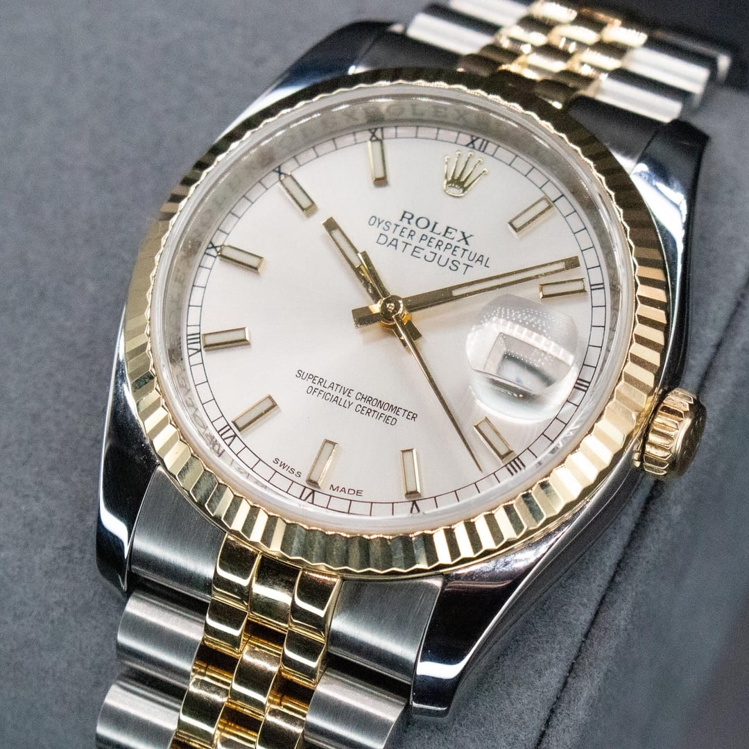 | ROLEX DATEJUST 116233 JUBILEE BRACELET FLUTED BEZEL TWO TONE 36MM SILVER DIAL graywhaleman (1413) |