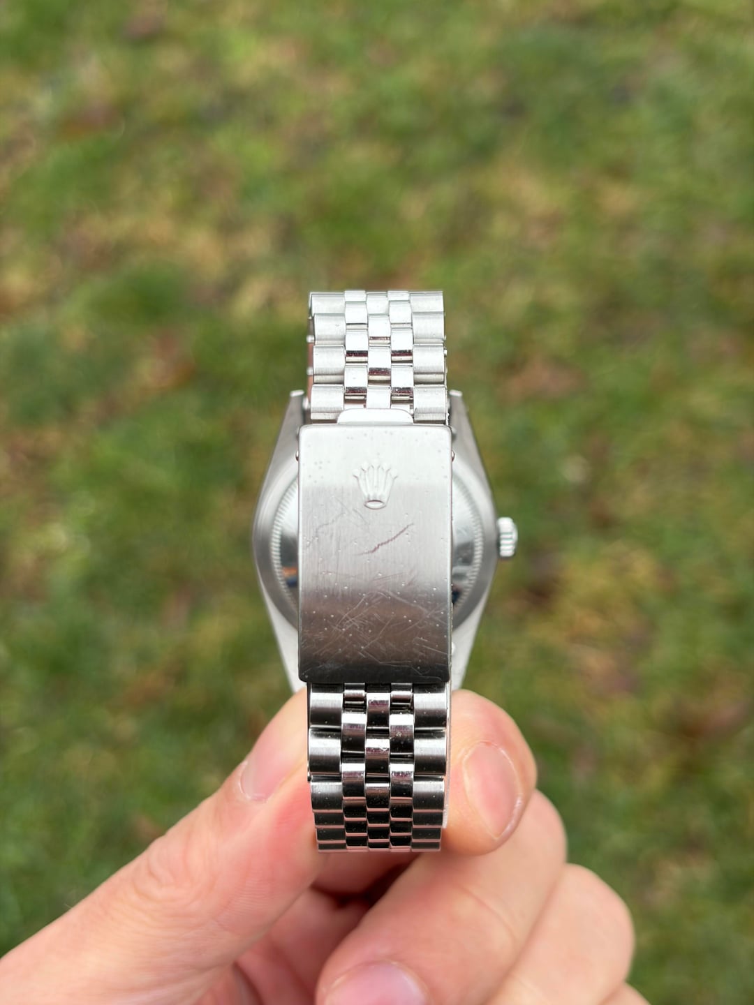 Hey all! Here is for sale a gorgeous Rolex Datejust 16234 Grey Tapestry Dial from 1997 according to F serial. Watch is in great condition, for sale is the watch only. Case measures 36mm, 43mm lug to lug, 11.5 mm thick and 20mm lug width. Case is in great condition, has signs of wear but no major dings or scratches. White gold bezel in in great condition. Crown is screw down and has Rolex logo. Crystal is sapphire and has no blemishes. Dial is the best thing right here, it has a gorgeous grey color and is called tapestry dial due to its specific texture. Dial plays beautiful under any light conditions. Lume on hands matches the lume on hourmarkers. Dial has T Swiss T at the bottom. Movement is Rolex caliber 3135. At the moment of sale movement keeps time +1 sec/day, please check timegrapher pic in Imgur gallery. Bracelet is Rolex 62510H Jubilee in great condition, it has moderate stretch and total 19 links, bracelet can easily fit a 19 cm wrist size. Clasp has P code which dates the bracelet to 1991. Watch looks brilliant due to its classic design and great preserved condition. Album: https://imgur.com/a/QrkXrKq Timestamp: https://imgur.com/a/QrkXrKq#x3fL01n Price is $5600 through PayPal F&F. DHL International shipping is included in price, I ship international. I’ve sold a couple watches here, so you can check my feedback on r/WatchExchangeFeedback I am not interested in trades. Please PM me if you have any questions
