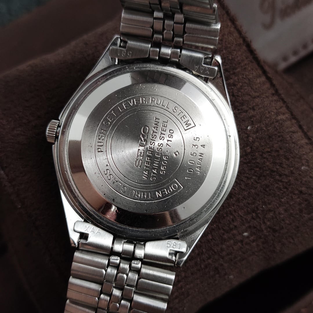 Up for sale is a Seiko 1971 Lord Matic (LM) 5606-7190 - BMBY: December, 1971 - Ref: 5606-7190 - Case Diameter: 36.5mm w/o Crown - Lug to Lug: 41mm - Bracelet: Up to 7.3 inch - Movement: Automatic - Calendar: Kanji/English - Date of serviced: December 30, 2025 - Polished - Working quickset - With Manual Winding - Hacking Images & Videos: https://drive.google.com/drive/folders/1-3PcWWZok-tJDObgX1eRPjrONVp-uFs0 - Please note that there may be minor scratches not visible in the photos. This is a vintage timepiece, so please manage your expectations regarding its condition. 💰 Price: $320 (Shipping Included) 🌍 Accepting Paypal F&F/G&S(+4.4%) or Wise - The buyer is responsible for any customs duties, taxes, or tariffs. However, I am happy to discuss shipping arrangements to help minimize these costs. 📦 Inclusions: - Watch - Presentation Box 📍 Location: Philippines 🇵🇭