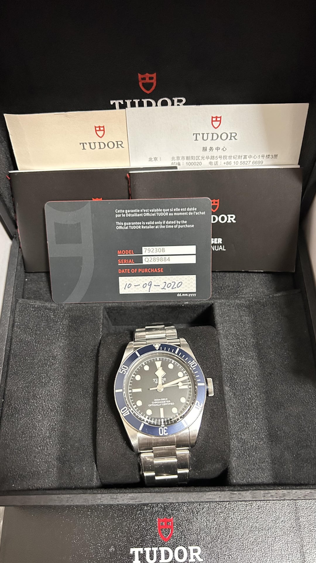 Up for sale is a 2020 Tudor Black Bay 79230B 41mm Full Set. It is fully functional and is running at +4 seconds per day. It comes with a warranty card dated 2020, Tudor inner and outer boxes, the original receipt, and Tudor booklets. ***The authenticity is 100% guaranteed – the watch has been thoroughly inspected and authenticated prior to listing. Feel free to check out my website*** **Tonneau Atelier** ***in my profile.*** Price: $2499. Payment via PayPal or Wise is preferred. No trades please! Watch is in Chongqing (known as the Cyberpunk City), China. I will pay the customs duties or tariffs for buyers located in United States. Watches will be shipped via FedEx, which delivers to your doorstep in just four days. Worldwide shipping and I am willing to ship this watch anywhere with buyers paying for the shipping. If you really love this watch and pay fast, I will offer free shipping! Feel free to ask for any custom timestamps or videos, I am happy to send them. Please don't hesitate to ask me any questions, thank you! Timestamp: [https://imgur.com/a/YBqXq6b](https://imgur.com/a/YBqXq6b)