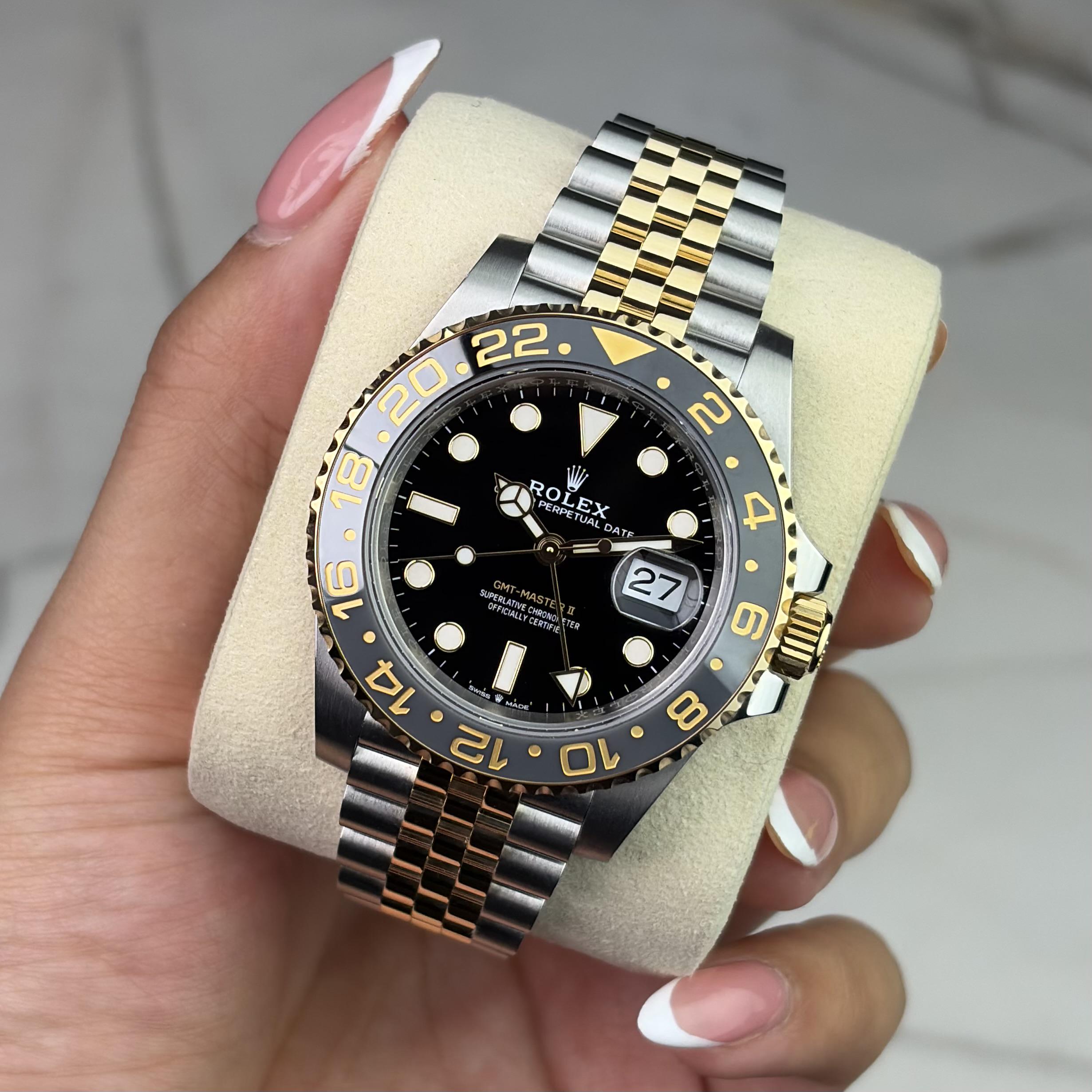 Timestamp: https://imgur.com/a/pSocti1 Album: https://imgur.com/a/3vE1IEf ________________________________________________________________________________________ The Rolex GMT-Master II 126713GRNR (2025) presents a striking two-tone configuration, pairing Oystersteel and 18k yellow gold with the modern black-and-grey Cerachrom bezel. Worn on the Jubilee bracelet, it adds a more refined, elegant feel while retaining the GMT’s signature sport-watch versatility. This example is in like-new condition and comes complete with its original box and papers. This watch measures 40mm diameter, 48mm lug to lug, and 12mm thick. **Condition:** Like new condition. See pictures for the most accurate representation of condition. **Includes:** This example comes as a complete set with its original box, papers and accessories. _________________________________________________________________________________________ **Price:** **21,500** **Shipping:** Free shipping to US addresses! I'm willing to ship internationally at an additional cost to the buyer. *Local pickup available at our Scottsdale, AZ office. Sales tax may apply.* **Payment:** Wire, Zelle, Crypto, or CC (with 4% fee). **Trades:** Yes, open to trades up or down for modern Rolex, AP, or Patek Philippe. Thank you for your consideration and feel free to reach out with any questions! -Aneisa