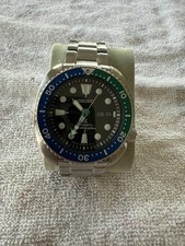 Timestamp: https://imgur.com/a/fls4cRG For sale is a Seiko Prospex SRPB11 Blue Lagoon Turtle Limited Automatic Watch Movement: 4R36 Mechanical (Automatic) Condition: Used Strap: Original bracelet sized to approximately 18cm with 3 extra links (links have 2 pins and no collars). Original extra rubber is included. Box: None Warranty card: None Manual: None Crown screws down correctly, wear on crystal. READ: Watch is losing time on the timegrapher. Approximate measurements: Case diameter: 44.3mm (excluding crown) Lug width: 22mm Lug to lug: 47.4mm Thickness: 13mm Asking $275 USD including tracked shipping to US. UPS Expedited/Express, Canadian, and global shipping available at an additional cost. Payment via Wise, crypto, wire, e-Transfer (for Canadians), or PayPal Invoice (+3.9%). No trades and please comment before messaging.