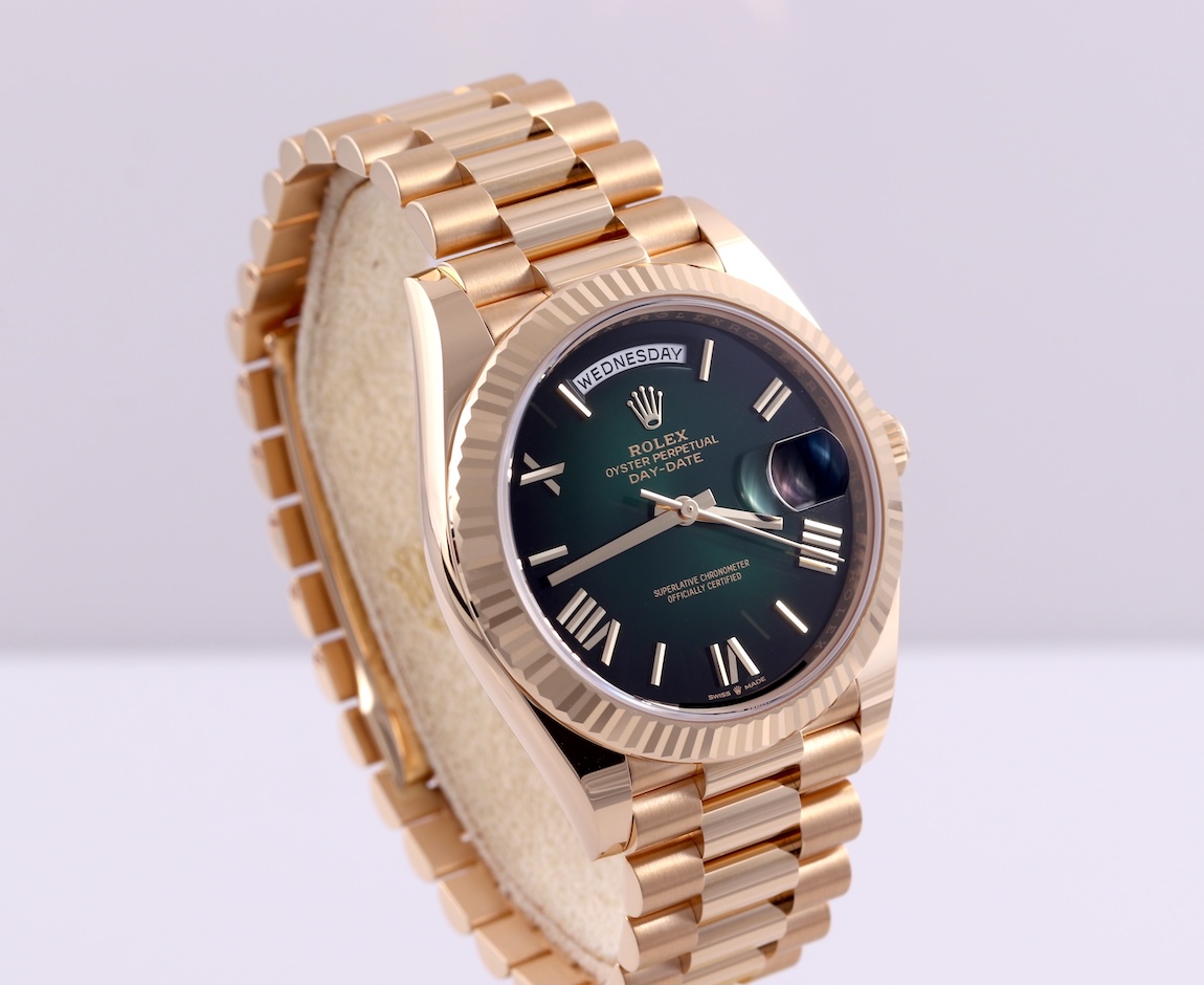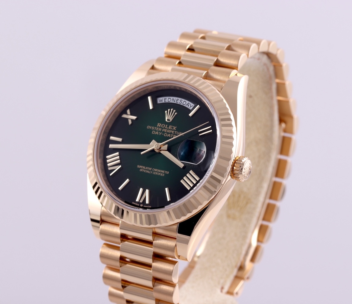 FSOT: 2025 Rolex Day Date 40 Green Ombré Yellow Gold Full Set 228238 4