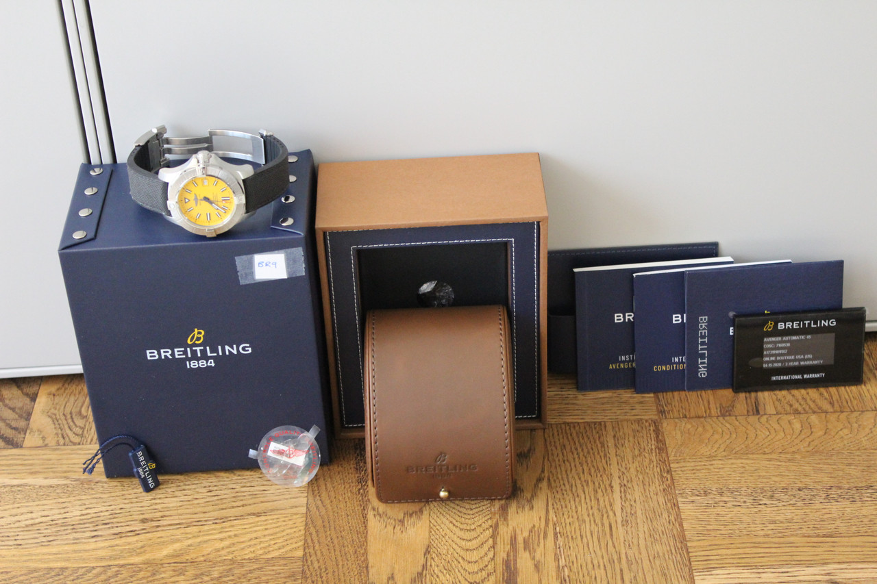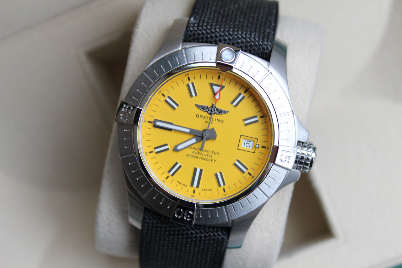 Amazing opportunity to acquire a Breitling Avenger Seawolf 45mm (A17319101I1X2) in a stunning yellow with box and papers!