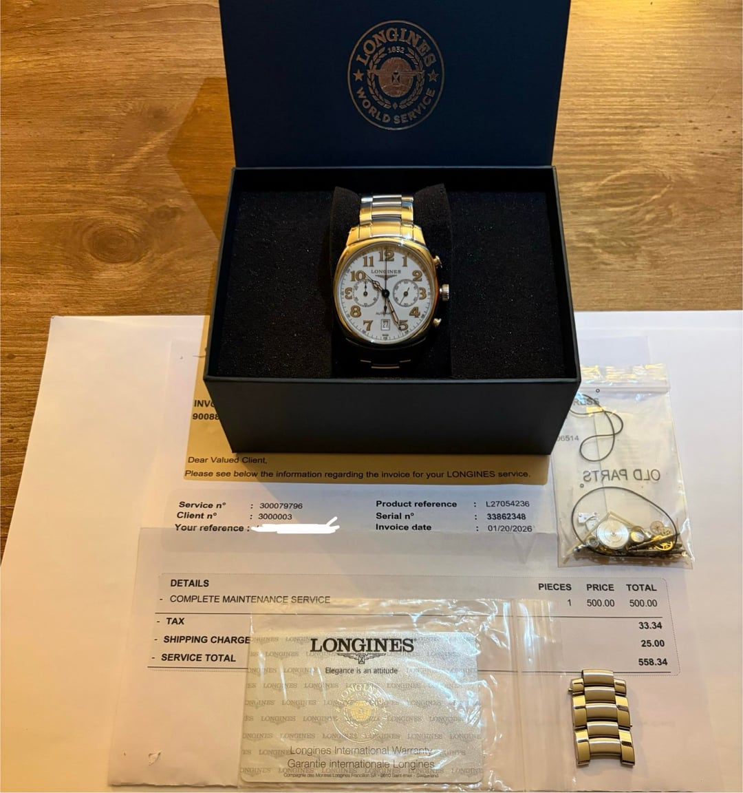 40.5mm Spirit Automatic Chronograph reference L2.705.4.23.6 from 2011. Watch just received a complete maintenance service from Longines which cost $558. I just got the watch back last week. Watch comes with Box and papers including warranty Card, Longines service box, spare parts from service, Longines invoice and 3 links. Near mint condition. $1400 OBO +shipping I have some experience buying, selling and shipping watches. I’m willing to do a FaceTime or whatever it takes to make buyer comfortable. I will ship FedEx “hold at location” with ID. I will also share mine. I accept Zelle, cash app, PayPal F&F and G&S(+4.5%). If you’d like to meet in person I’m located in southern CT.