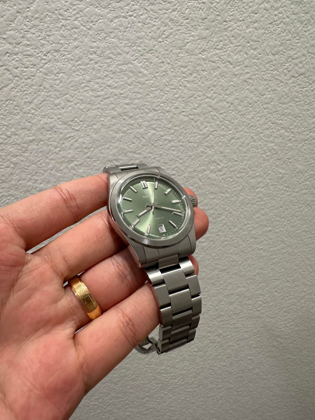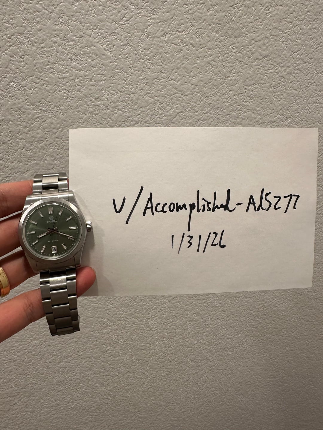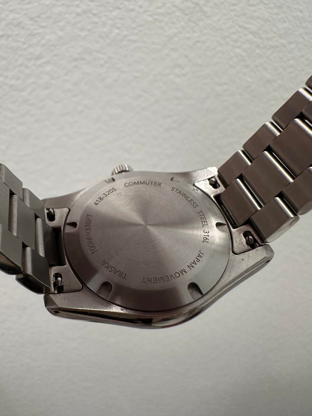 Very popular microbrand. This is the latest generation commuter in a color that is no longer available. 36 case diameter. No visible scratches but refer to the image and timestamp link for condition: https://imgur.com/a/traska-kTww3A2. running about +5 s/d, often +3s/d. Great wearer with on the go microadjust clasp. And that green; it’s just perfect (better than the current bottle green imo.) Also confirmed by Traska to have warranty until June 2028. The warranty is attached to each watch so no card necessary. will ship with original box and leather pouch. Looking to trade for a Traska SUMMITEER 36 CHARCOAL BLACK or other explorer 36 inspired watch in good condition. Send any offers. Photos+Timestamp: https://imgur.com/a/traska-kTww3A2
