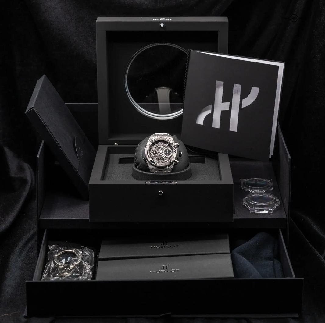 Comes as a full set with the special box, key chain, and LE numbered booklet. Also includes 3 Hublot straps- white rubber, black rubber, and fabric on velcro. Like new/mint condition, and registered on Hublotista with active warranty.
