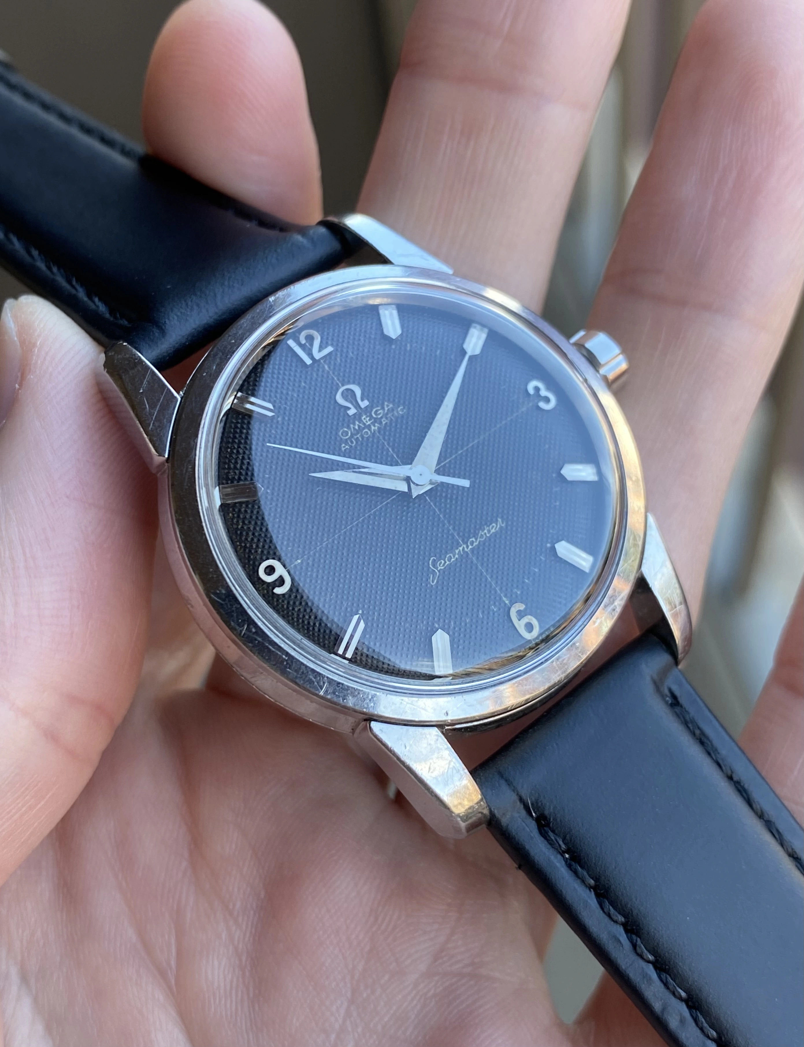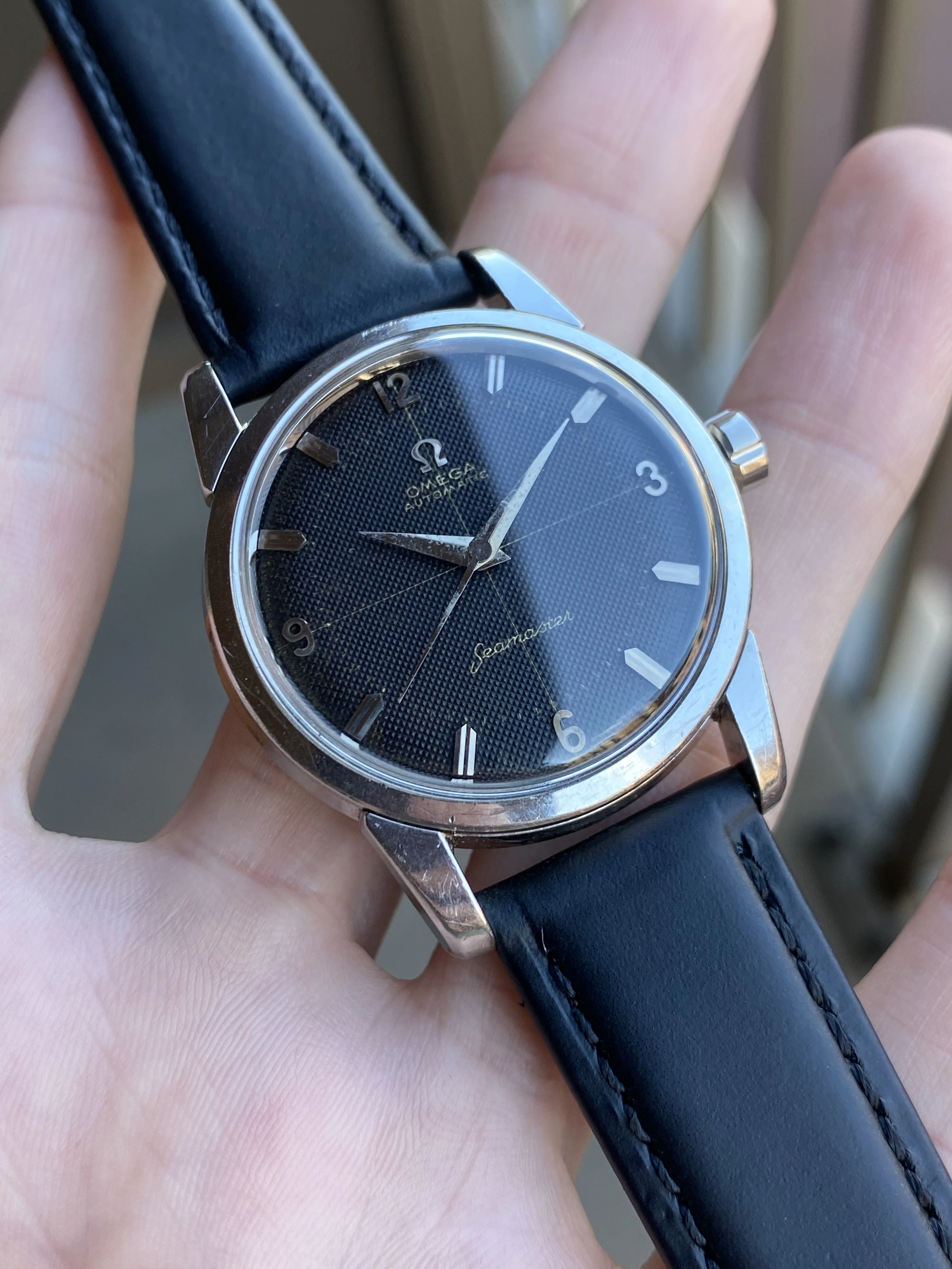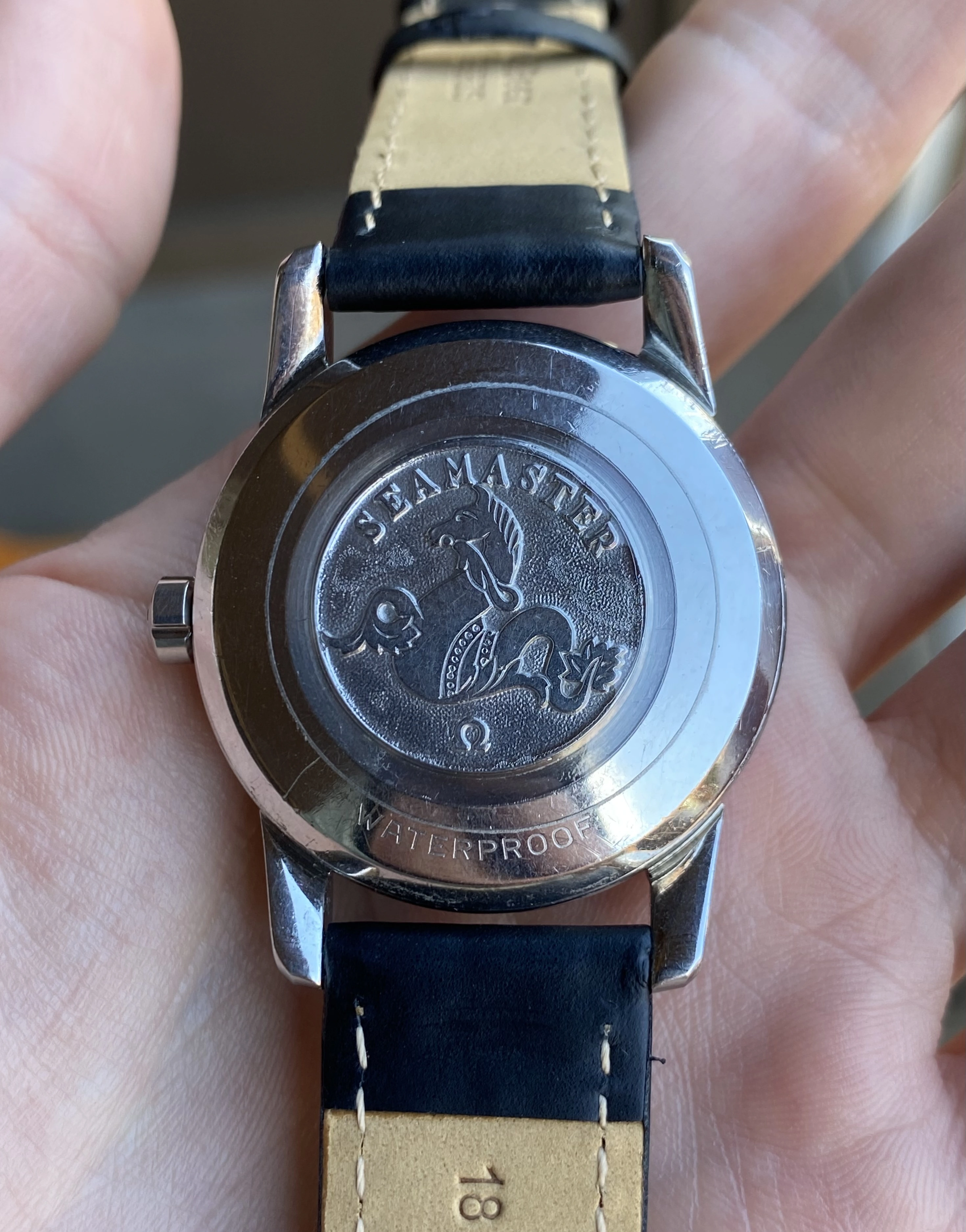 Up for sale is another that I’m sure I’ll regret selling but that just doesn’t get the wrist time it deserves. It’s a grail vintage Seamaster - a beefy lug steel 2846 ref. featuring an original black waffle dial with a crosshair and arabic numerals. As if that wasn’t enough, it’s a big hippocampus caseback model, made only in ~1958. Full info is below, and don’t hesitate to message me with questions.