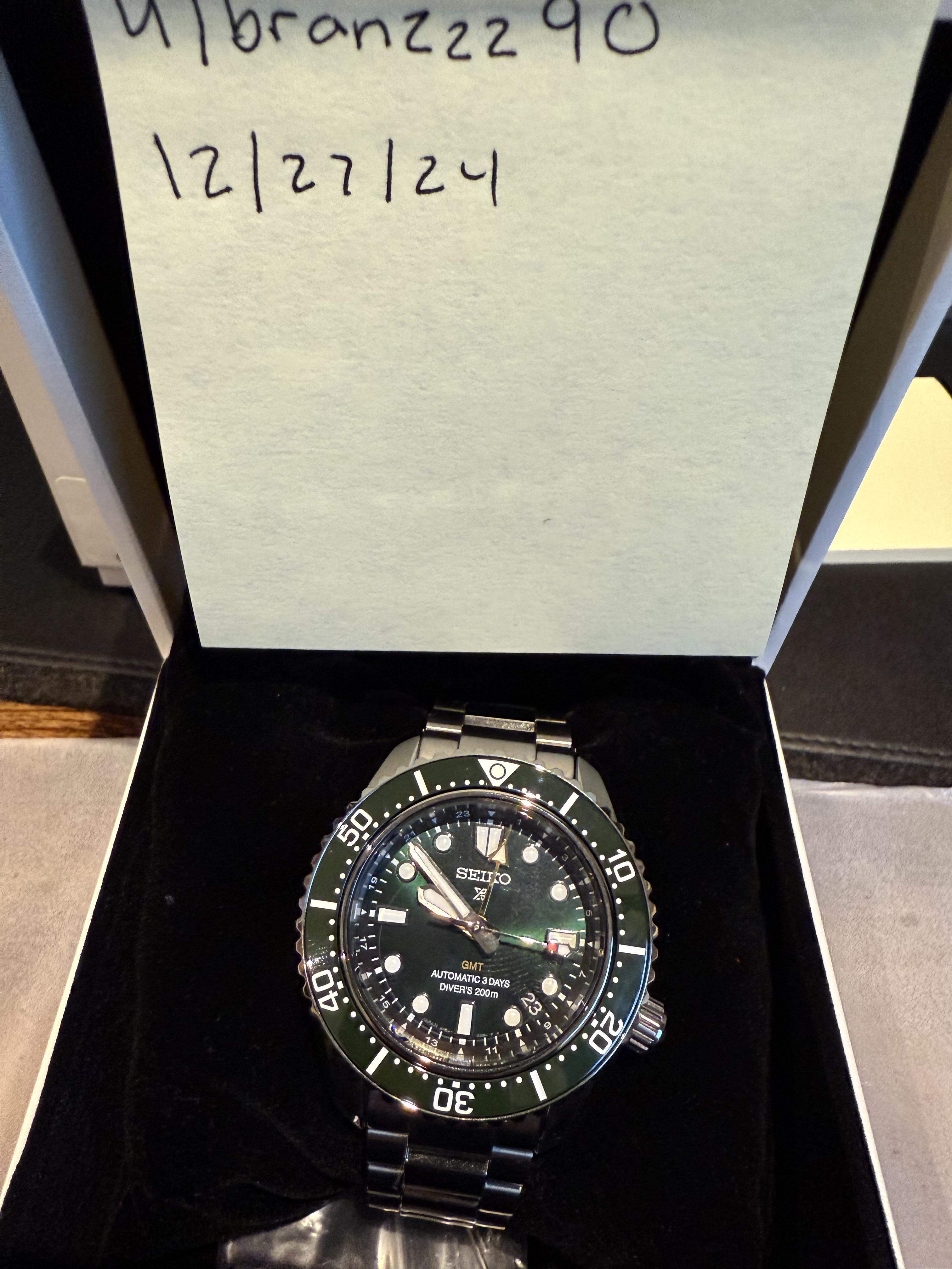 Good Afternoon Watchexchange, Up for sale is my Seiko SPB318 GMT. Lightly worn, but still in mint condition. It was purchased brand new in October, card is dated 10/15/24. Watch js in mint condition, with little to no signs of wear. I have priced this to sell fast. Comes as a full set. I can FaceTime or google meet to confirm condition of watch. Shipping to CONUS only PLEASE NO TRADES Price-$999 including Insured and expedited shipping Preferred Payment- Zelle, Bank wire, Paypal F&F (depending on transactions) Link to album- https://imgur.com/a/spb381-CYx9ey7 Timestamp- [https://imgur.com/4A00XV1](https://imgur.com/4A00XV1)