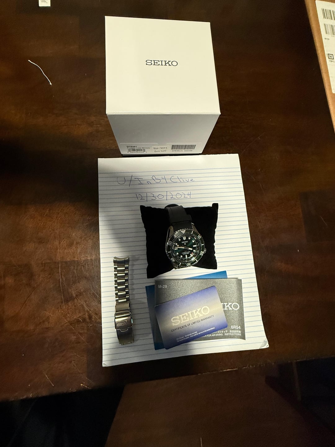 Up for sale is a used Seiko SPB381 in pretty good condition. Purchased from AD in July 2023. See pictures for condition - there is a scratch on the bezel ring around the 9 o’clock mark and desk diving marks on the clasp. Comes with the original bracelet as well as the fitted Crafter Blue rubber strap seen in the pictures (made specifically for this watch). Box and papers also included. Price is $900 shipped to U.S. only. Paypal or Zelle accepted. Photo Album: [https://imgur.com/a/6dwiA86](https://imgur.com/a/6dwiA86)