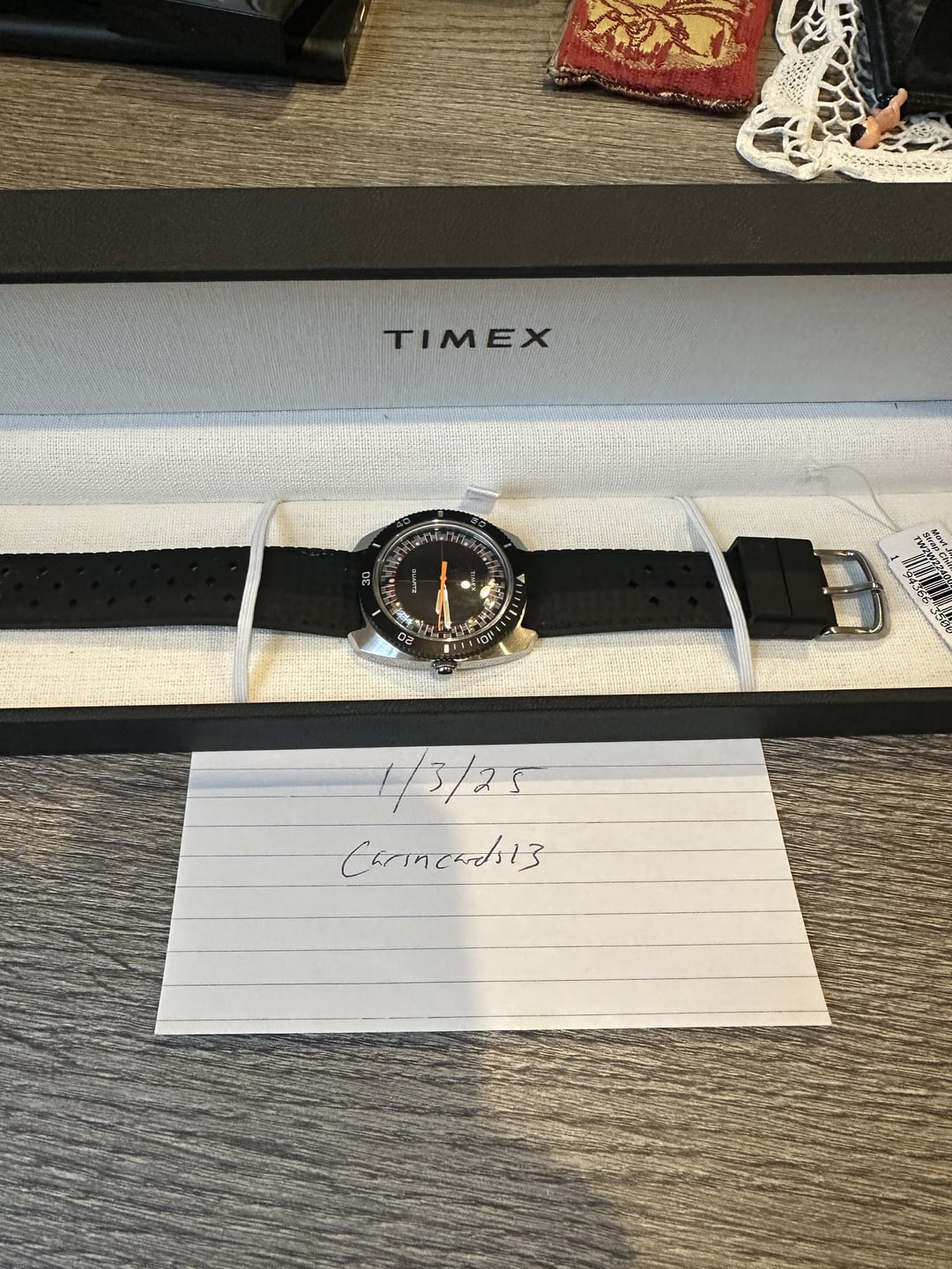 Purchased new and presents very well. Main flaw is some scuffing on the crystal just above the “Timex” text. I worked on it briefly with some Polywatch and there was a noticeable improvement. $100 shipped CONUS via PayPal FF or Venmo