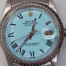 | Rolex Datejust 36mm Blue Roman Turquoise Dial Jubilee Steel Watch 1603 Year 1969 interwatches (10354) |