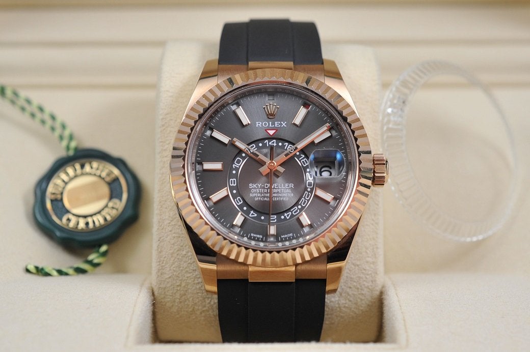 FS: Rolex Sky-Dweller (Sky-D) 326235 - RG Rhodium Dial on Oysterflex - Complete - VG!