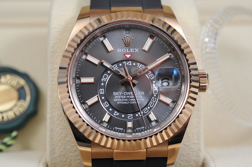 | Rolex Sky-Dweller 42mm Rose Gold Chocolate Arabic Dial Crocodile Strap 326135 swissice (5313) |