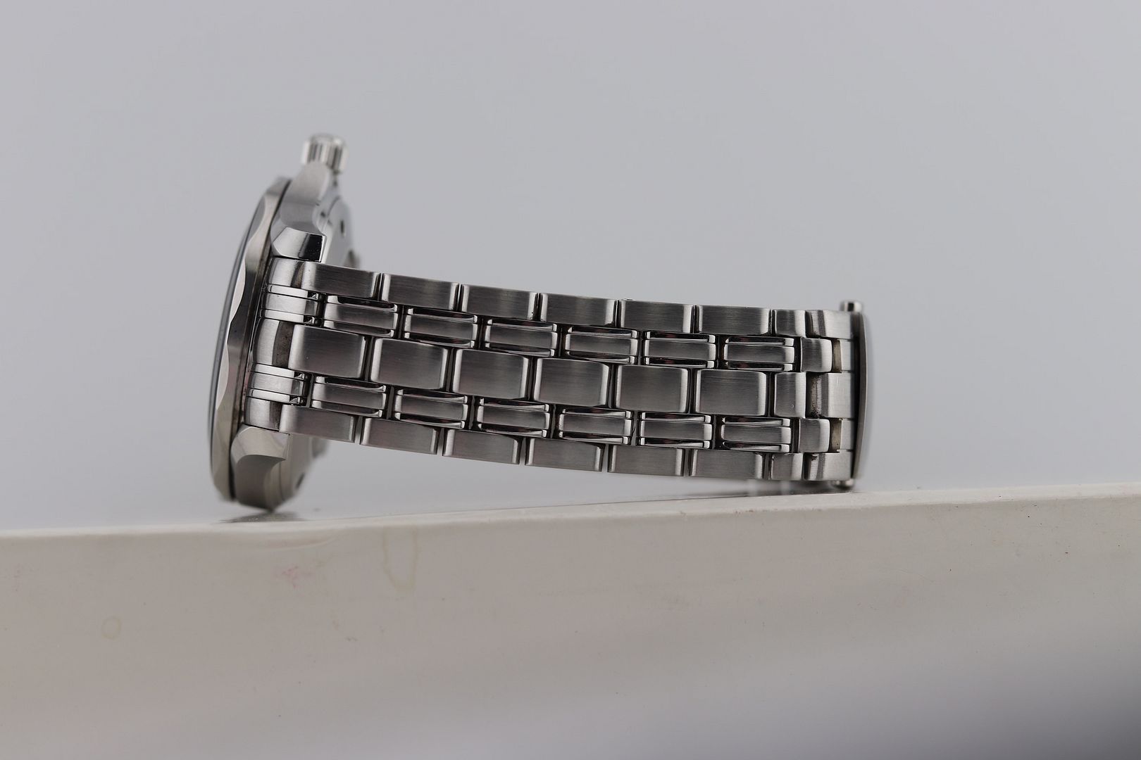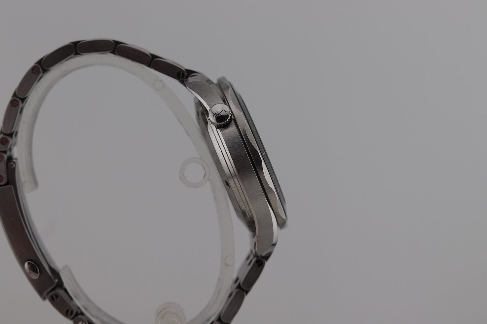 Watch comes with large white Omega outer box, large wooden Omega inner box with watch pillow (there is some damage to the lining around the watch pillow due the previous owner incorrectly placing the watch pillow upside down), large red Omega Operating Instructions book, white Omega card holder/sleeve, white Omega cloth bag, red Omega Pictograms (Model) Card, red Omega Warranty Card (stamped and completed from Authorized Dealer for 2015 purchase date), and original Omega hangtag (matching model/serial numbers). Clearly visible anti counterfeit "globe" engraving and 86 million serial number present.