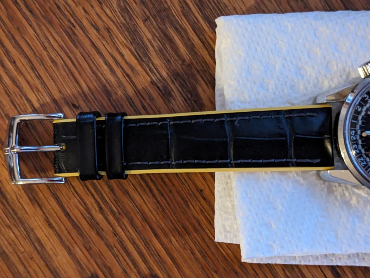 Like-new Hirsch ANDY Alligator Embossed Performance Watch Strap in BLACK / YELLOW. Retails for $149. See Black and Yellow Watch Strap | Alligator Embossed | HS – HS by WatchObsession