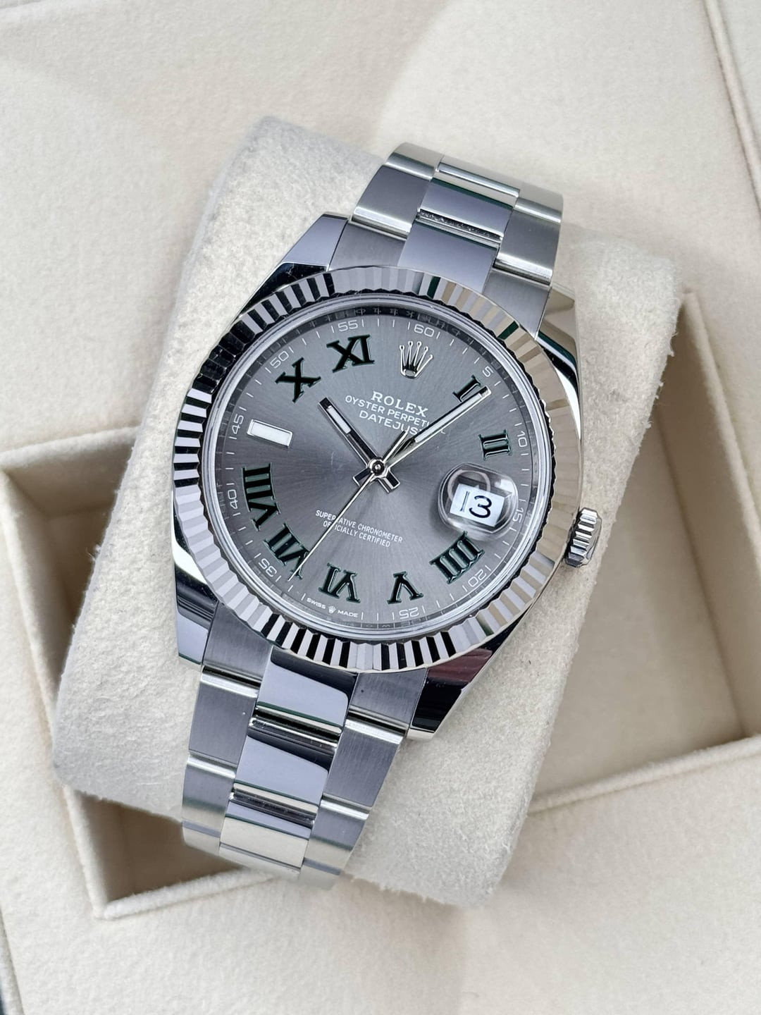 Selling this beautiful Rolex DateJust reference 126334 in one of the most desirable configuration: Wimbledon dial with fluted bezel on Oyster bracelet. **It comes as a watch only** with 11 full links, meaning that this watch comes with no box or papers, thus making it impossible to accurately date its production year. A Rolex box can be included for a little extra, if requested. **This Datejust is in great condition**. **Photos:** * [Album](https://imgur.com/a/datejust-wimbledon-only-feb2025-SD5Jkt7) * [Timestamp](https://i.imgur.com/BCfuoOI.jpeg) * [More on my Instagram @SolanaWatches](https://www.instagram.com/solanawatches/) **Price is $9,950 shipped** in the CONUS. **I have completed many transactions here.** I am a full-time watch dealer, and can provide additional references upon request. **Feel free to contact me** via PM so we can exchange numbers and get on the phone or do a video call, if needed. You can also [find me on Instagram @SolanaWatches](https://www.instagram.com/solanawatches/). _Private showroom located in San Diego, CA. Reach out to schedule an appointment._ _All my watches are guaranteed 100% authentic, and I will stand by their authenticity._ _California buyers without a seller’s permit are subject to sales tax._
