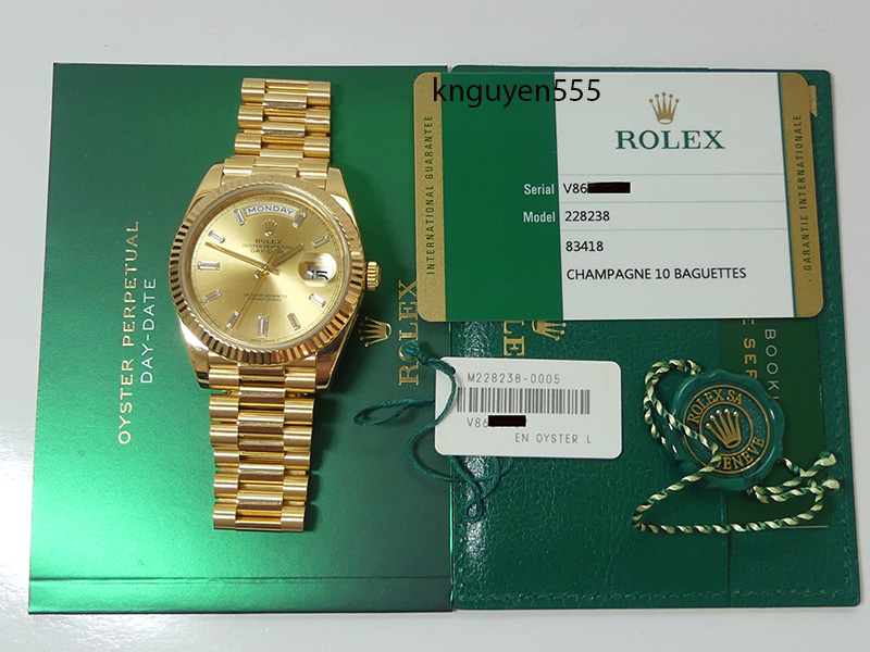 FS Rolex 18K Yellow Gold Day Date 40 Champagne Baguette Diamonds 228238 Full Set