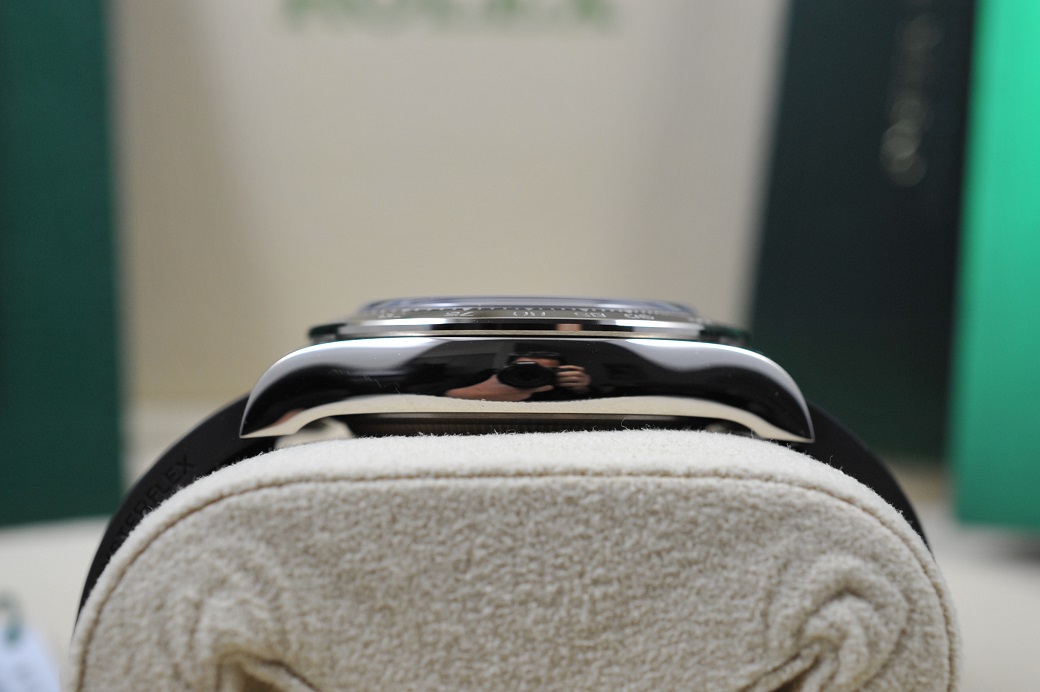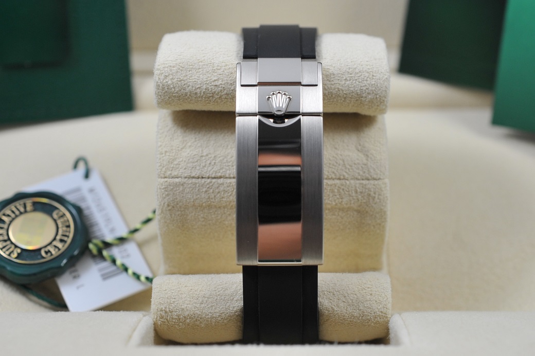 Condition is Unused; will show no signs of wear. There are zero marks on the polished white gold side case cases and white gold clasp. The rubber strap is brand new - unused. Absolutely no dings, dents, or scratches. Watch runs and winds solid. Crystal, ceramic bezel, and dial are flawless. Watch is sharp as depicted in the photos! Overall, watch is ready to wear and enjoy.