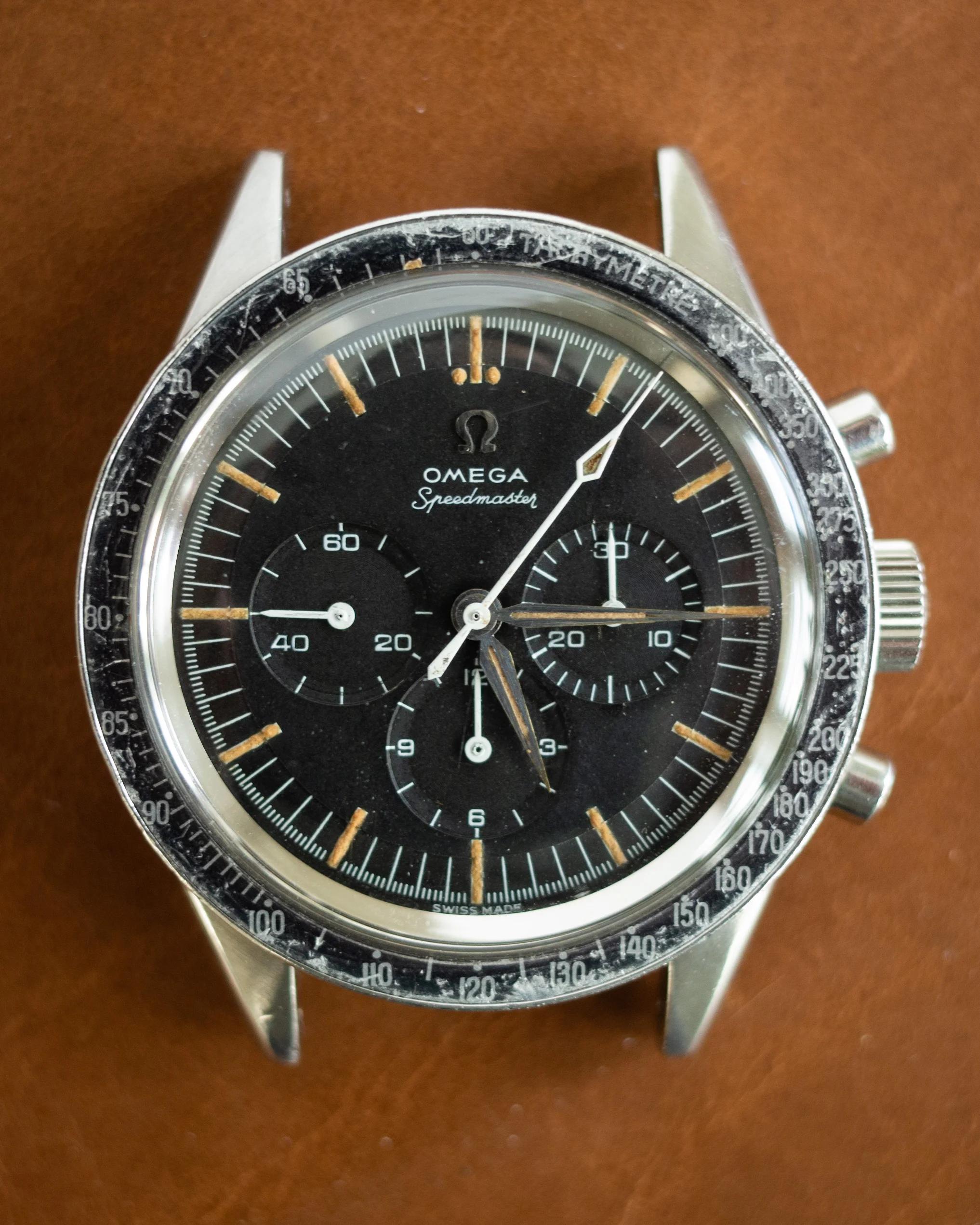 Up for grabs is an attractive Omega Speedmaster 2998-62. It's far from a perfect example and needs the attention of a watchmaker to at least reseat the setting lever screw, but I've priced it aggressively low (I think?). This could make a really great daily driver with some attention. Feel free to ask questions, etc. I purchased this watch about 10 years ago from a collector in the UK. Here's a funny little story he sent me about how he came to own the watch: